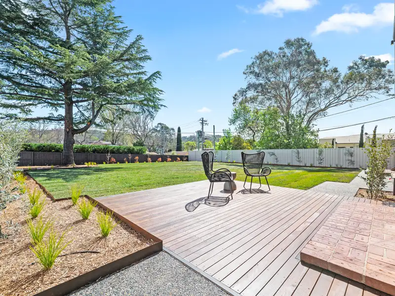 Enjoy views to the north-east through leafy street trees and up to Red Hill at the rear, with a recently turfed lawn and cleared, levelled backyard, retained on two sides – perfect for a future pool or open play space. Mature plantings include olive trees, camellias, magnolias, crepe myrtles, and Japanese maples, complemented by Corten steel edging, epoxy-coated exposed aggregate paths and driveway, and sensor lighting throughout.