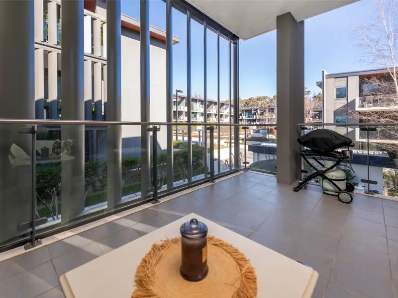 A beautifully proportioned balcony offers a peaceful retreat and an ideal space for alfresco entertainment. Overlooking established greenery in the heart of Griffith, it extends seamlessly from the living area and main bedroom, providing a private, leafy outlook and a serene connection to the outdoors year-round.