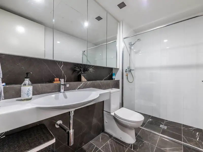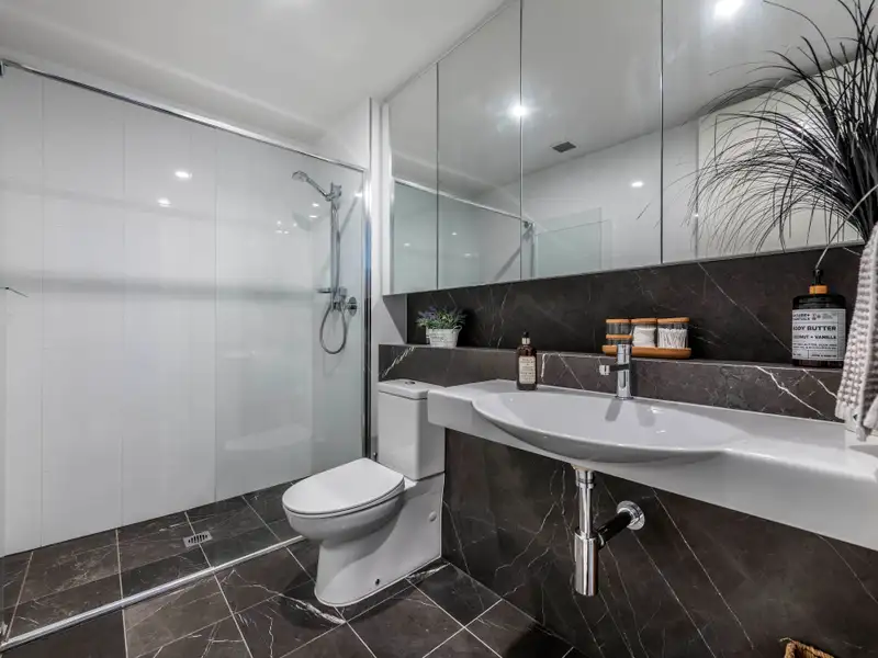 Luxury finishes continue throughout with high ceilings, plush pure wool carpets, ducted reverse-cycle air conditioning, ceiling fans, and high-speed NBN connectivity. An oversized double garage (43sqm) in the secure basement provides ample room for vehicles, bikes, and storage, with convenient lift access to the apartment.