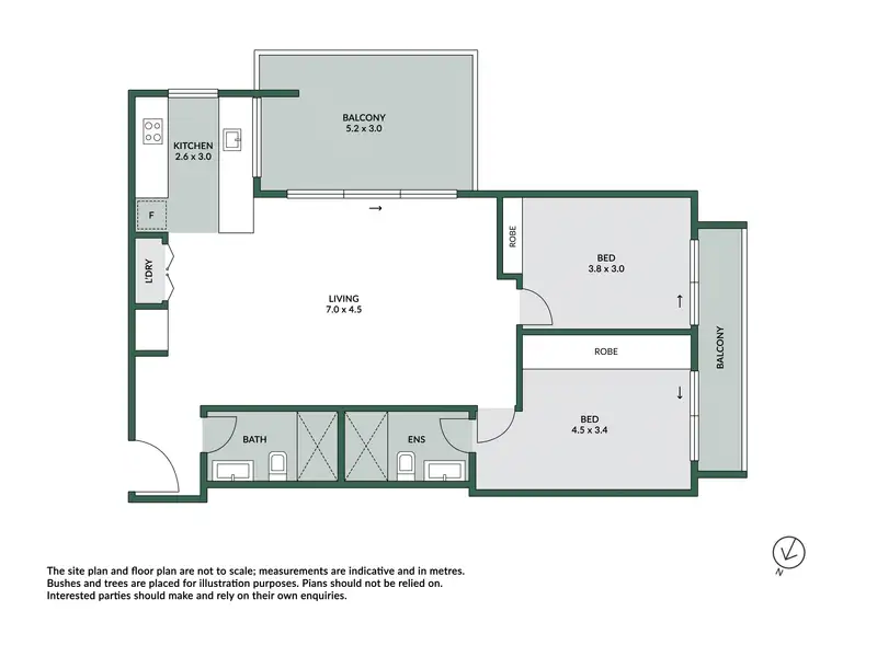 The main bedroom is a peaceful haven, complete with linen sheers, courtyard access, generous built-in robes, and a designer ensuite. A second well-proportioned bedroom includes custom wardrobes.