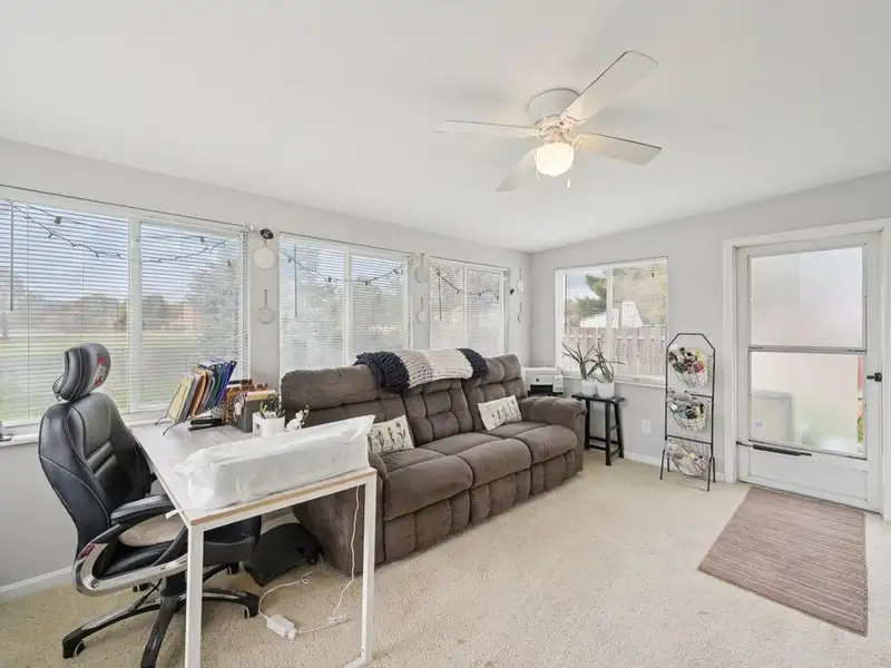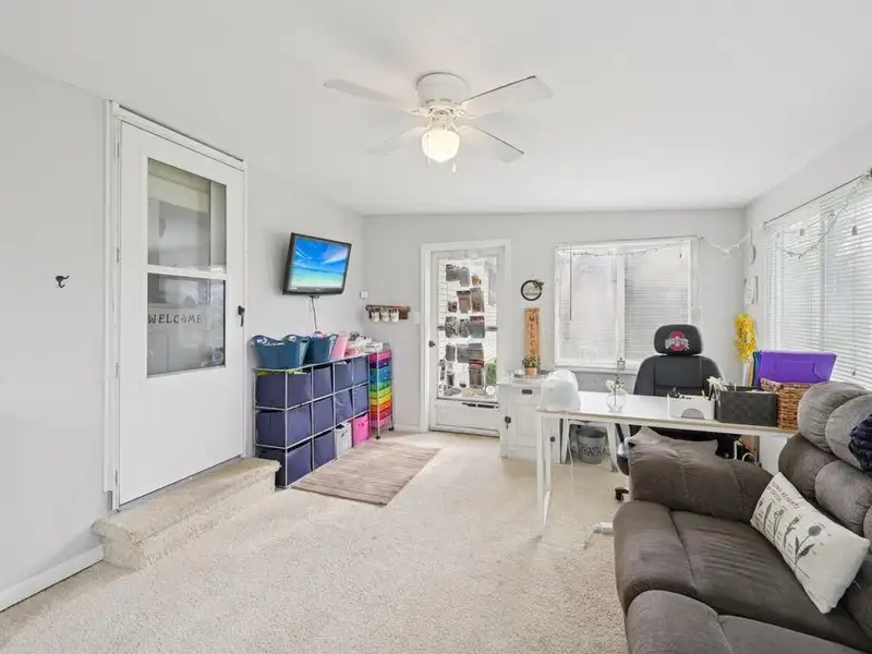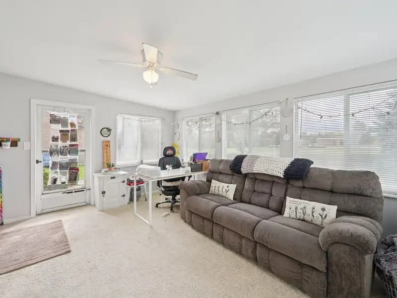 - Bright three-seasons room overlooks backyard