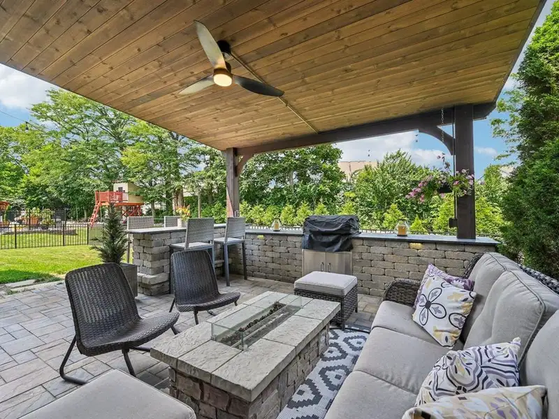 - Covered patio with built-in gas grill