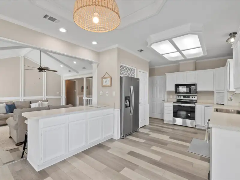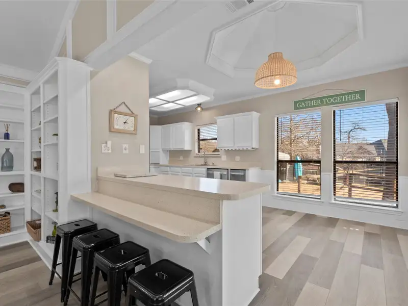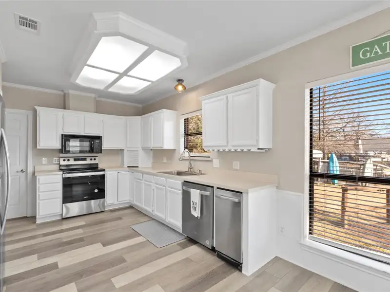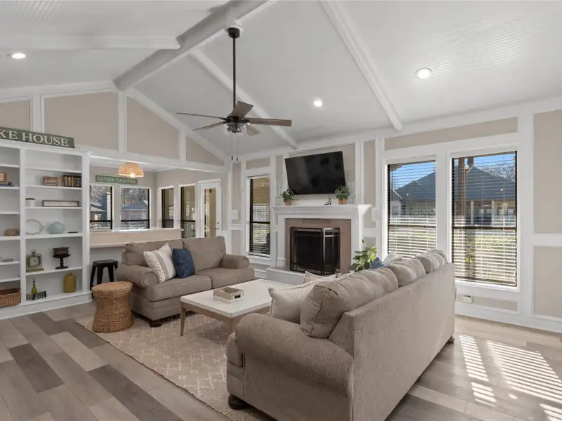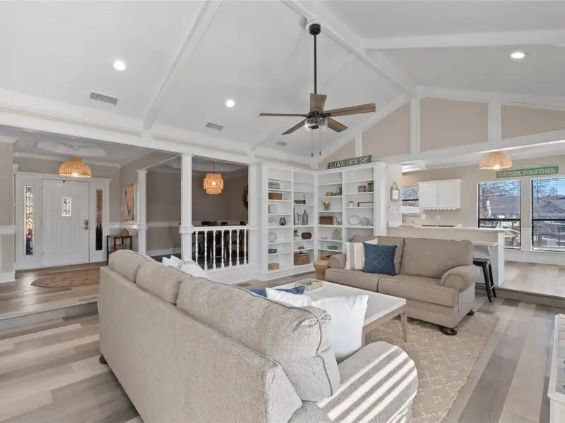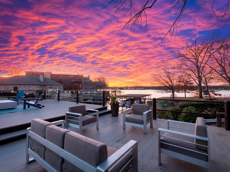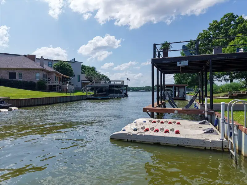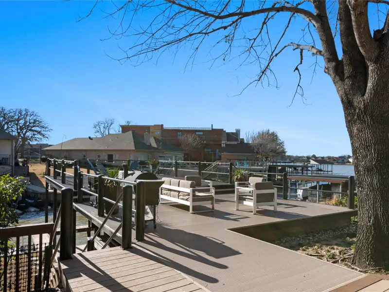 Situated on a large lot with 191 feet of prime waterfront, this lake house offers the perfect blend of comfort and scenic beauty. Inside, the open-concept living area boasts vaulted wood ceilings with exposed beams, creating a warm, inviting atmosphere. The breakfast nook offers beautiful water views and seamlessly connects to a cozy sitting area, perfect for enjoying the serene lakefront. The spacious primary suite features high ceilings and its own sitting area, all with breathtaking water views. Step outside to a multi-level deck with aluminum decking, ideal for entertaining or simply relaxing while taking in the lake view. The property also includes a single-slip boathouse and two personal watercraft pods. Recent upgrades include a new retaining wall and boathouse, both installed in 2022. Whether you're seeking a peaceful retreat or a place to entertain guests, this lakefront home provides the perfect setting. Seller converted sunrooms into sitting areas and or lounging areas with split HVAC units in both rooms. Furnishings negotiable. Seller will provide list of exclusions.