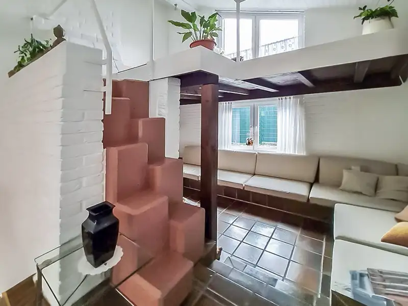 If we go up a few steps, we reach the private area. Here you will find the master bedroom and 2 children's bedrooms. The bathroom has already been modernized and is equipped with underfloor heating, a towel radiator and a walk-in shower and WC.