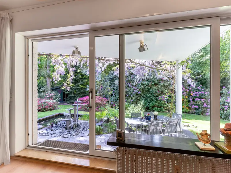 The open kitchen combined with the spacious living/dining area leave nothing to be desired. Floor-to-ceiling windows offer you a fantastic view of the beautiful garden and combine the inside and outside in the most beautiful way. A marble fireplace provides cozy and pleasant warmth. End the day with a glass of wine on the large balcony terrace.