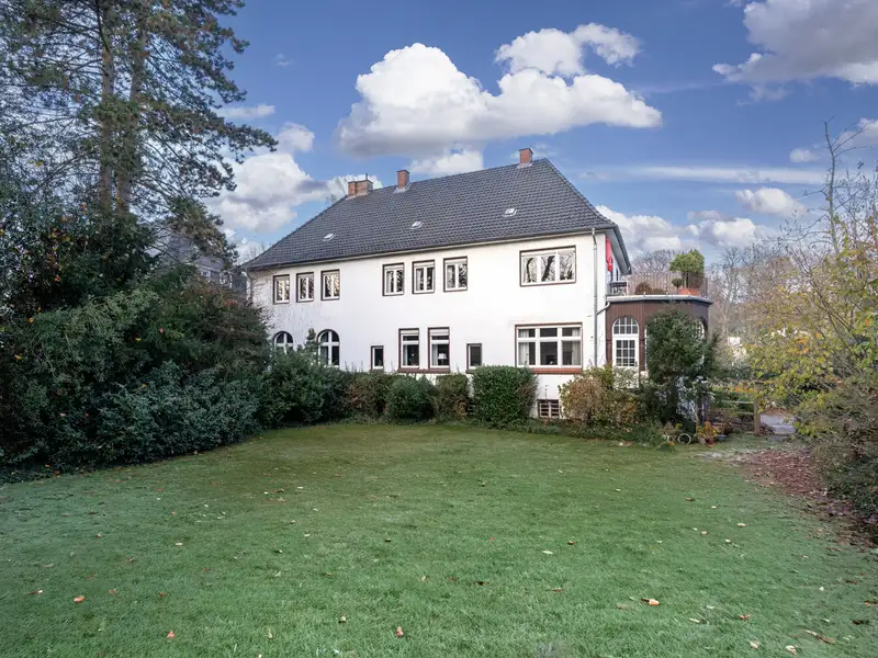 This representative Wilhelminian-style villa from 1907 is located in a quiet prime location in Gütersloh and is characterized by its historical character and a cohesive, harmonious overall appearance.