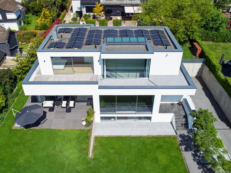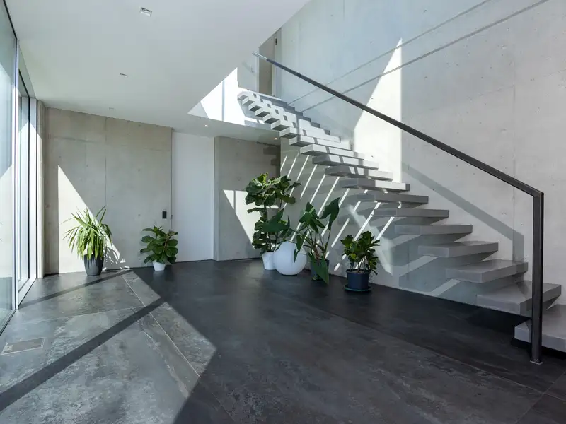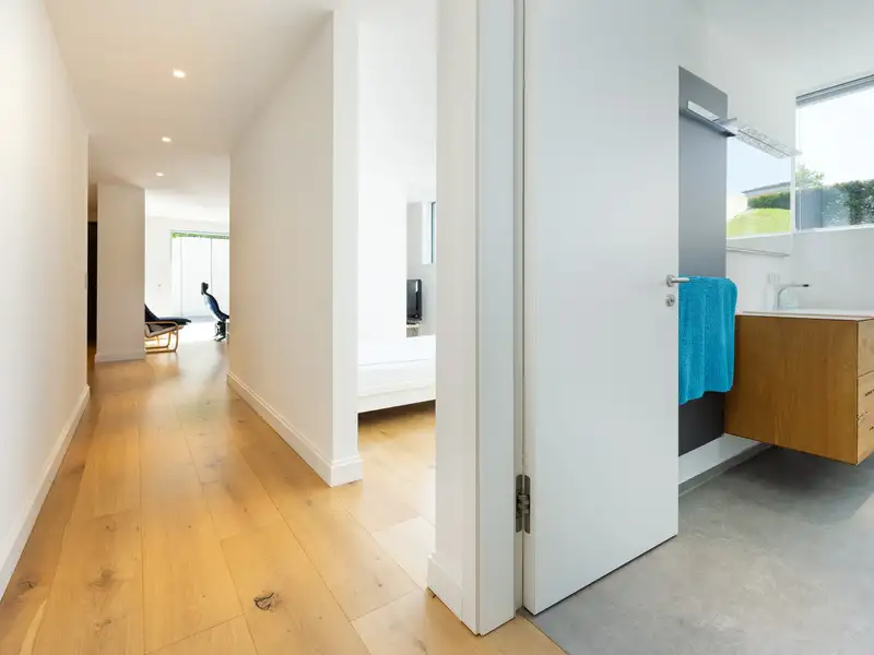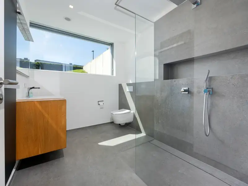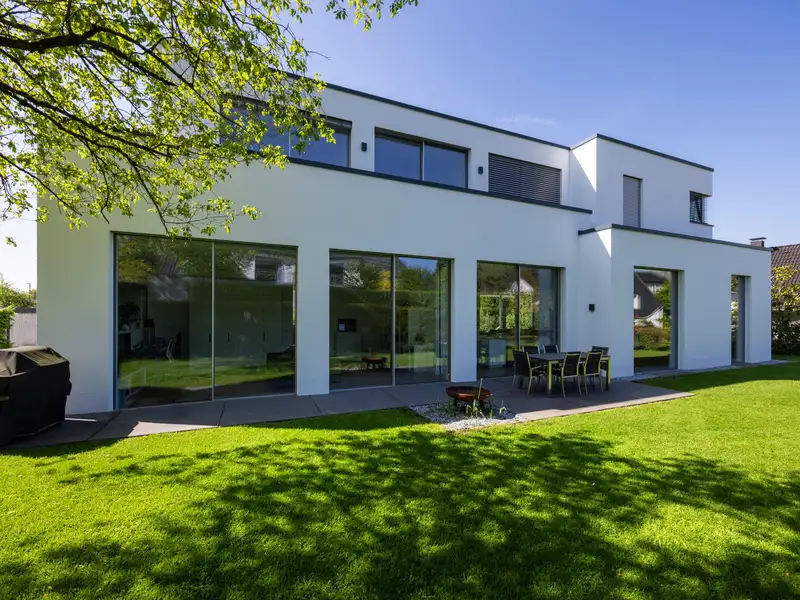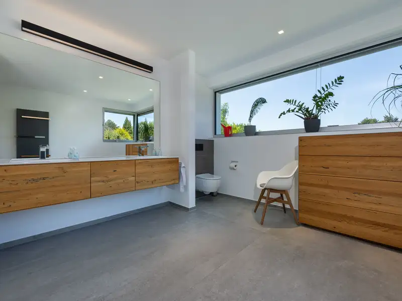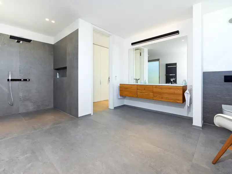 The villa's climate-friendly energy concept is supported by a geothermal heat pump, a photovoltaic system and underfloor heating. A central ventilation system ensures a pleasant indoor climate. The property also has a smart KNX bus system for convenient control of the building services.