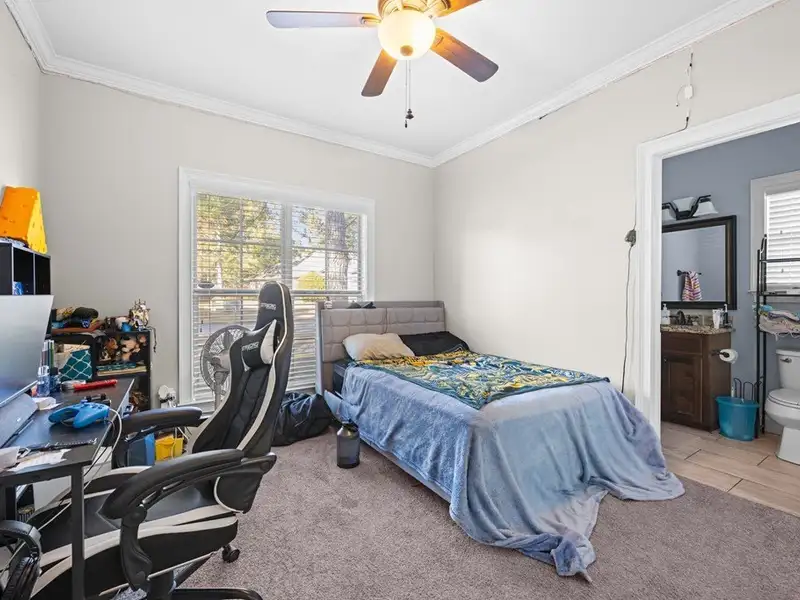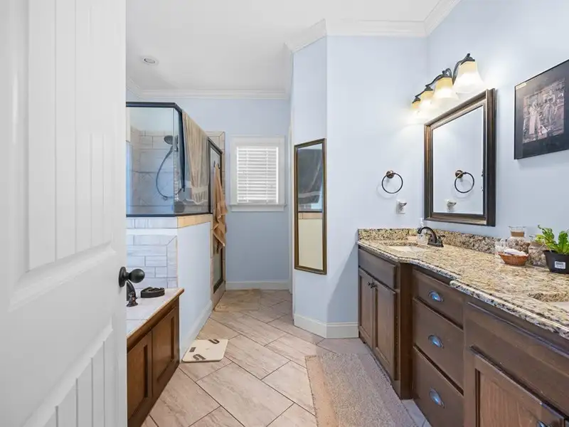 - Master suite with walk-in tiled shower