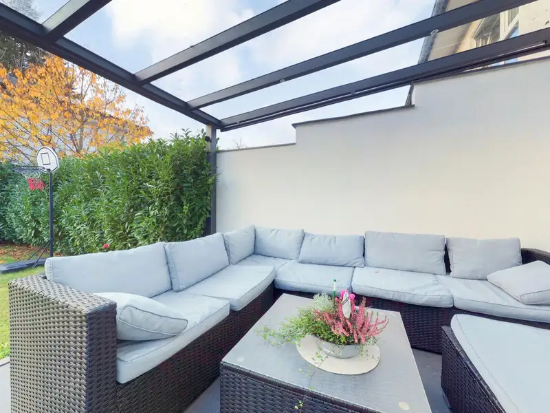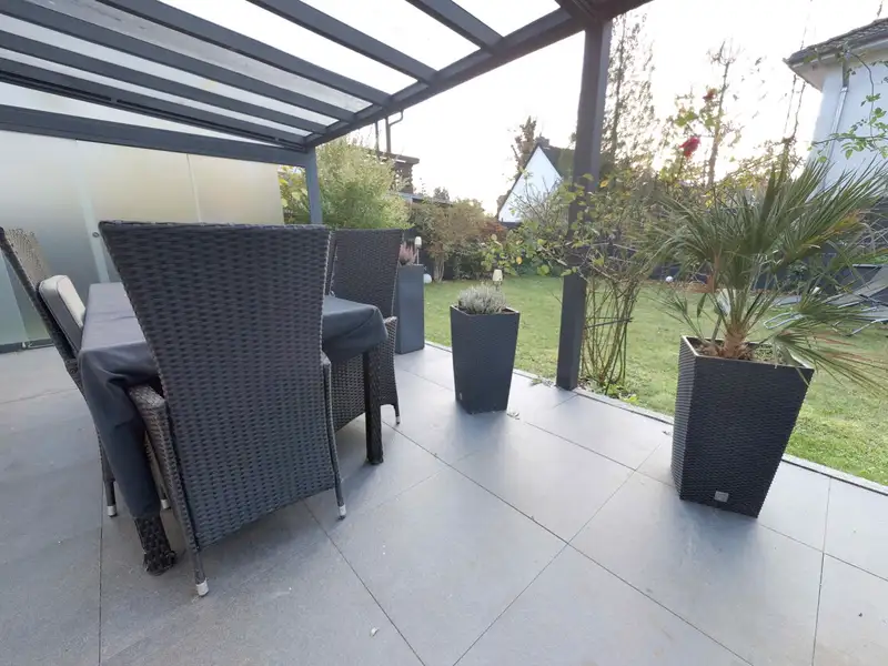 - Covered west-facing terrace and landscaped garden