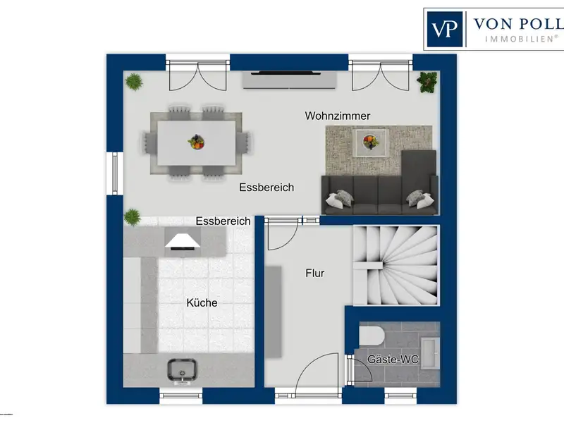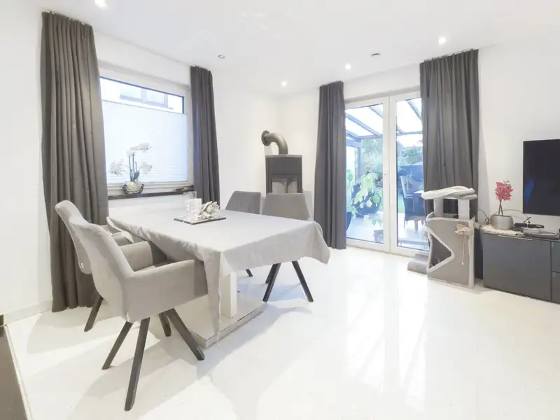 - Open-plan living and dining area