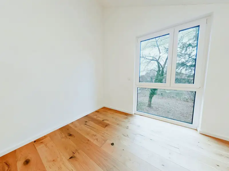 Windows with triple glazing and electrically operated privacy and light protection systems not only contribute to energy efficiency, but also to the pleasant atmosphere. Another highlight is the photovoltaic system with 20 modules and a total output of 7.8 kWp including inverter (8 kW) and bidirectional meter in the technical room. This not only protects the environment, but also reduces ancillary costs in the long term.