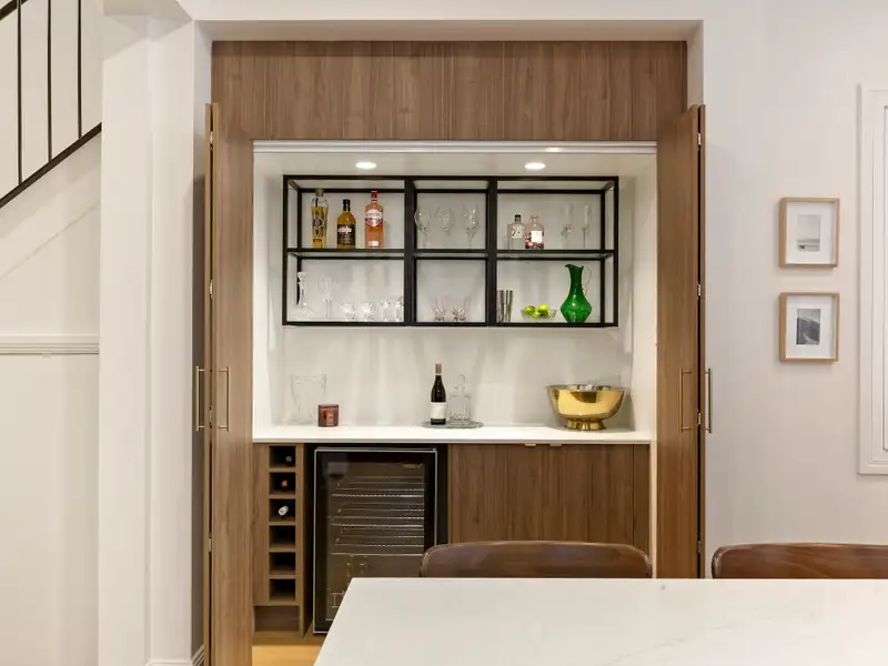 - Dream kitchen finished in stone and a timber look, featuring a walk-in pantry, premium appliances, and an adjoining built-in bar