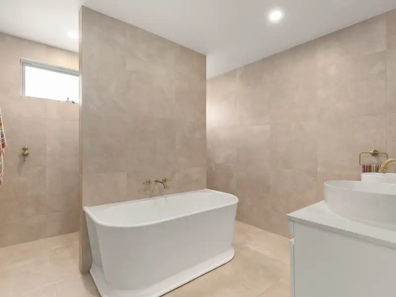 - Luxe main bathroom with bath and twin vanity, paired with a flawless ensuite featuring twin showers