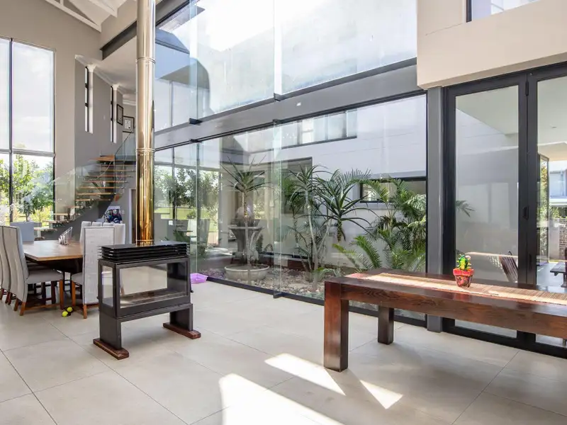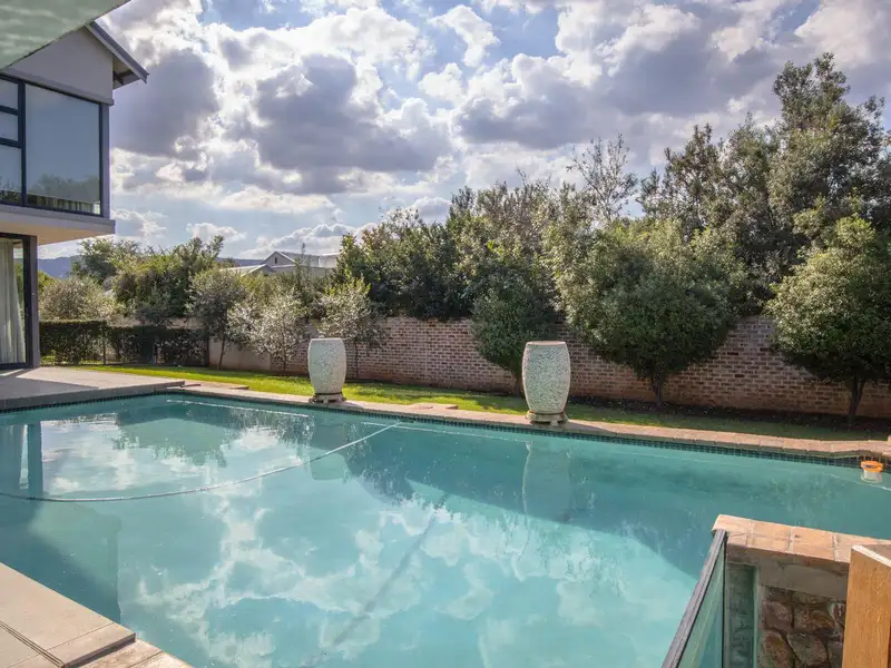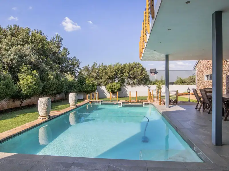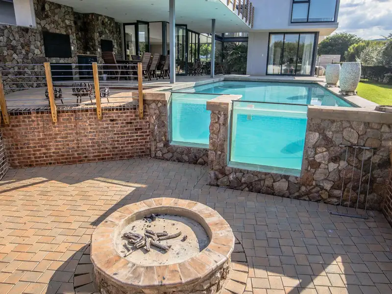 - Sparkling swimming pool with sunken fire pit