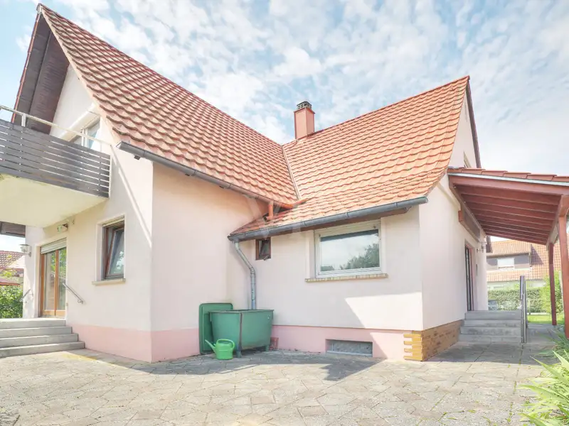 This well-kept detached house in solid construction is located on a spacious plot of approx. 603 m² and offers a living space of around 140 m², spread over two levels. The successful room layout and the beautiful garden make the property particularly attractive - ideal for families, multi-generational living or use as a two-party house.