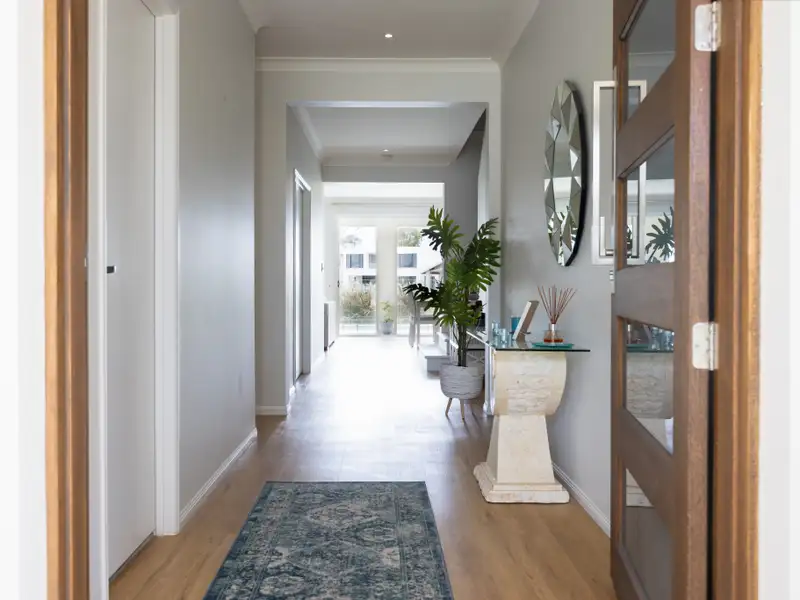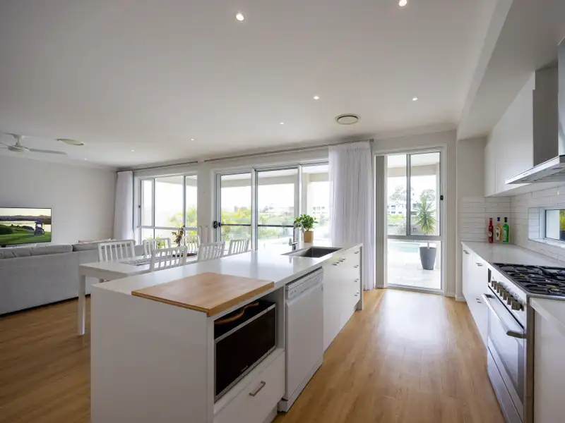 This two-level house offers spacious open plan kitchen, dining and living areas flowing seamlessly onto the lovely alfresco entertaining areas and swimming pool with views across the water. Opening from the wide entry hall is a very generous guest bedroom with walk -in wardrobes and its own ensuite bathroom – perfect for guests, grandparents and teenage children wanting their own space and privacy. Further down the hall is a large media/family room with double doors which could also be used as a study or home office.