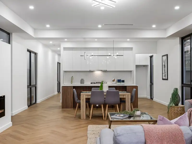 Crafted with an unwavering commitment to elegance and comfort, this residence embodies contemporary luxury at every turn. Towering 3-metre ceilings enhance the sense of scale, while the harmonious pairing of timber herringbone flooring and premium carpeting is accentuated by expansive glazing that bathes the interiors in natural light. At the heart of the home lies a gourmet kitchen, appointed with high-end appliances and designer finishes to satisfy the most discerning home chef. Meticulously curated throughout, the property achieves a flawless synergy of style and practicality, perfectly suited to a modern lifestyle defined by quality and sophistication.
