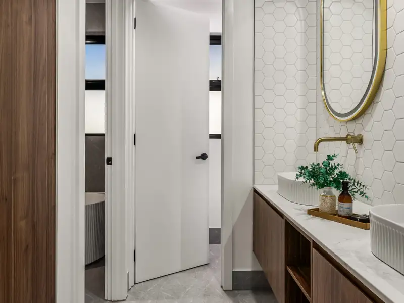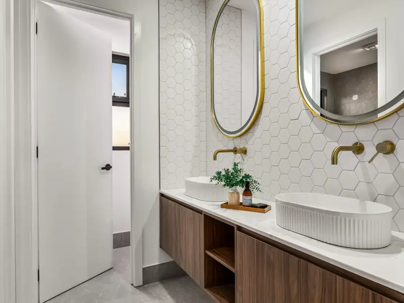 - Deluxe master suites upstairs and downstairs featuring spacious walk-in wardrobes, modern ensuites complete with floor-to-ceiling tiles, toilet, double vanity, and large shower.