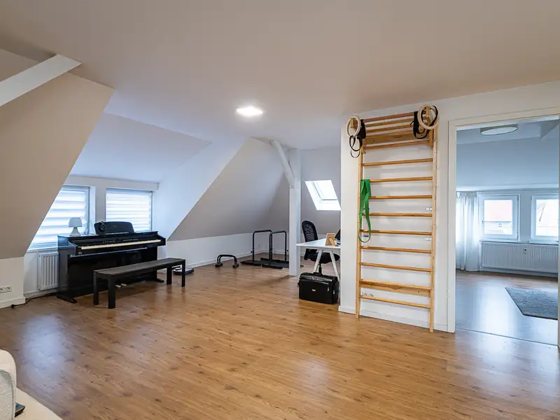 A particular strength of this property is the variety of possible uses thanks to the two separate residential units plus attic, which can be lived in together or independently of each other. The large balcony on the upper floor offers an additional valuable retreat. See this exceptional two-family home for yourself and arrange a viewing. This magnificent townhouse offers you numerous opportunities to combine living, working and relaxing under one roof.