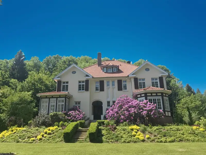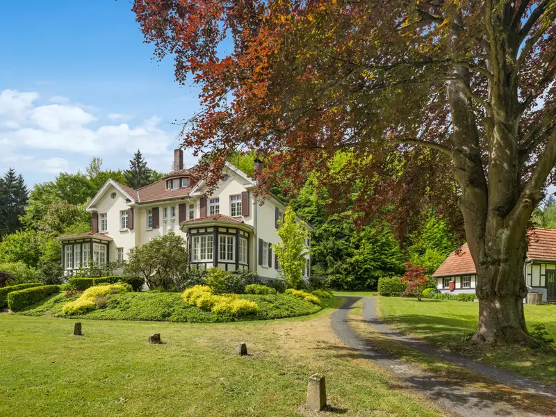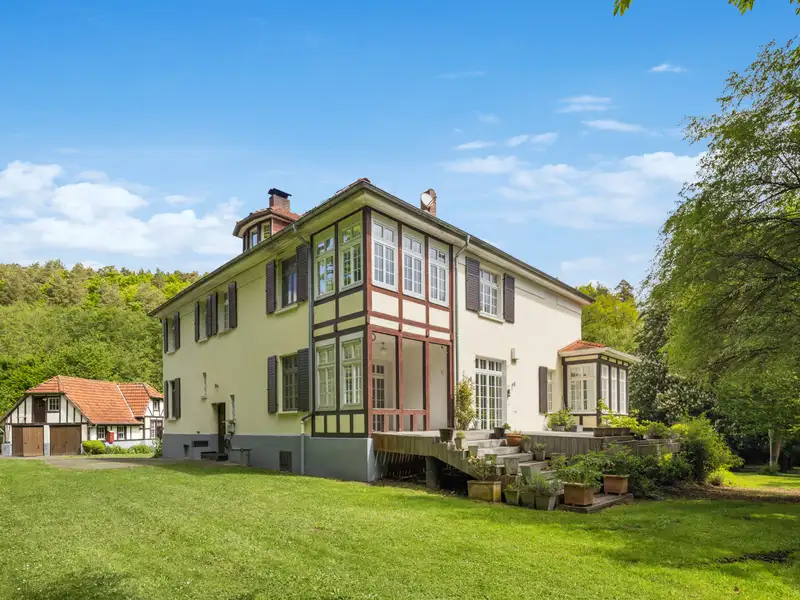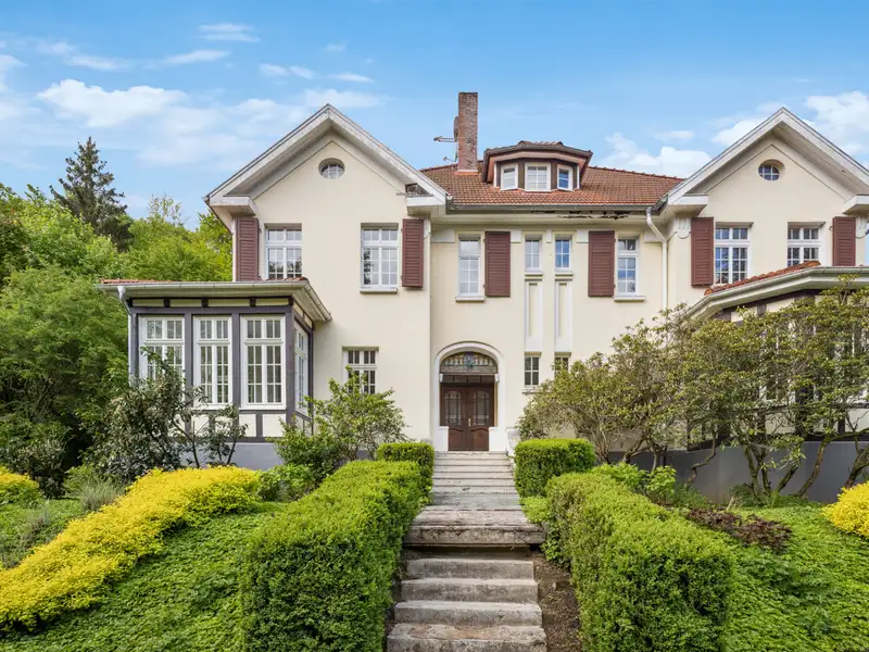 This exclusive listed villa from 1911 impresses with a generous living space of approx. 450 m² and a spacious plot of approx. 13,200 m².