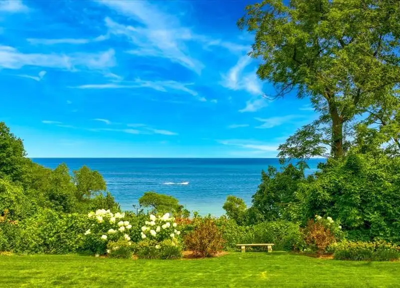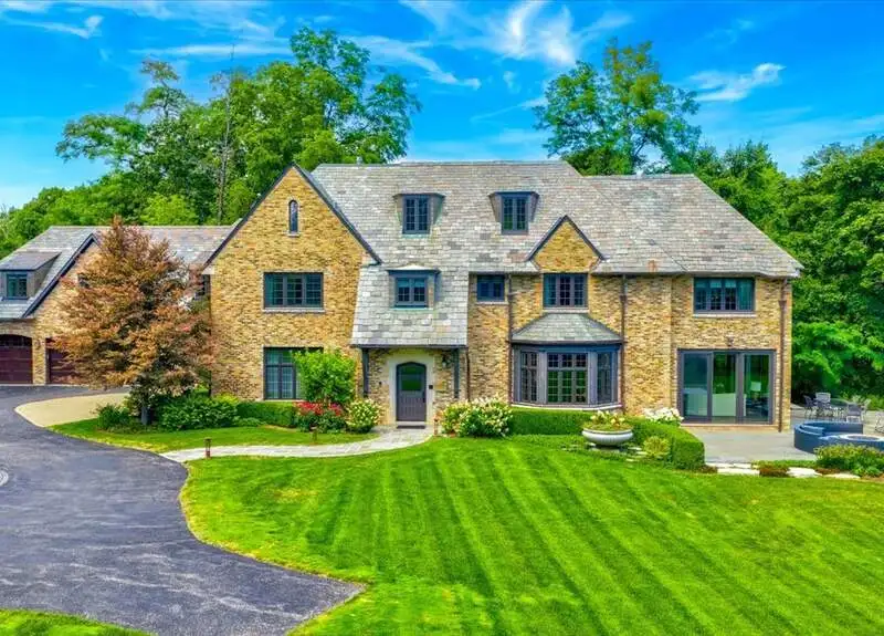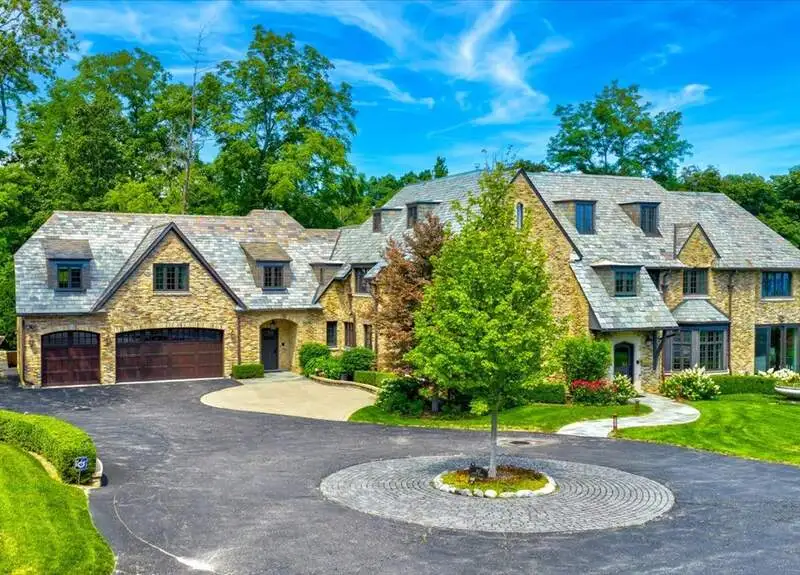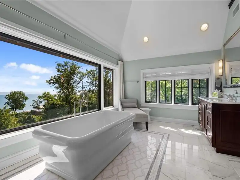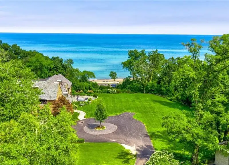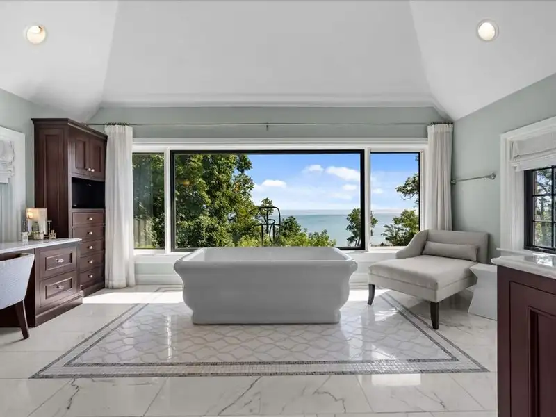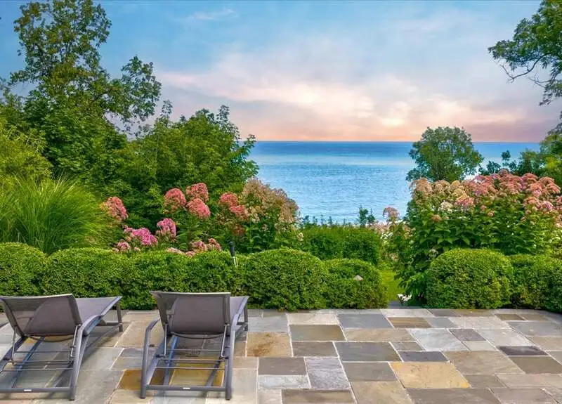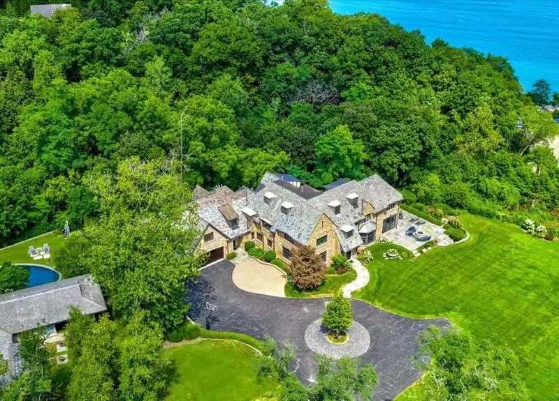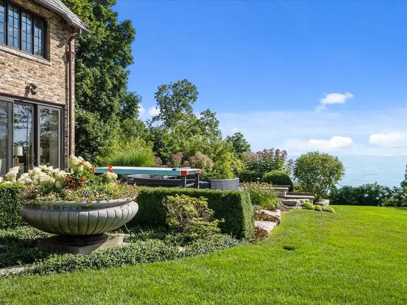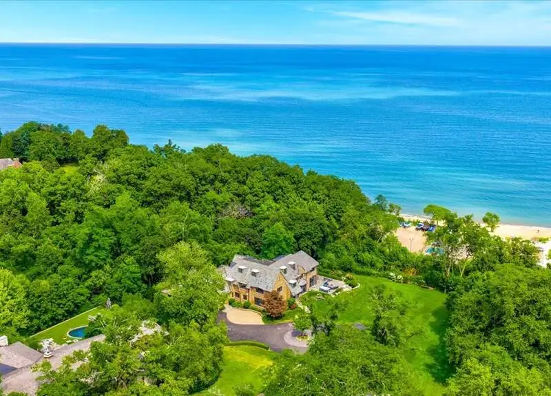 Located in the coveted Belle Avenue Historic District, this extraordinary estate sits on 2.3 acres of manicured grounds with sweeping lake views. Fully renovated and expanded, the residence blends timeless elegance with modern luxury for a truly one-of-a-kind offering. This five-bedroom, eight full and one half bath home showcases craftsmanship of the highest caliber, including a brick exterior, slate tile roof, extensive millwork, crown moldings, built-ins, hardwood floors, expansive windows, soaring ceilings and graciously scaled rooms. No detail was spared in the complete gut renovation and thoughtful addition that restored and elevated this classic beauty. A welcoming foyer leads to a grand living room, perfect for entertaining, with a limestone fireplace, custom built-ins and a wet bar. The living room opens to a light-filled sunroom with three sets of floor-to-ceiling sliders, seamlessly connecting to multiple outdoor entertaining spaces with endless lake views. A formal dining room with herringbone wood floors, custom wallpaper and a crystal chandelier adjoins to a butler's pantry featuring two wine fridges, custom cabinetry and marble counters. The chef's kitchen is a showstopper, with bespoke inset white wood cabinetry, Quartzite counters, decorative marble backsplash, oversized island with prep sink and seating, professional-grade appliances and a walk-in pantry. A spacious eat-in area has 2 sets of sliders that lead to the bluestone patios. The kitchen opens to a large sunken family room that is a perfect gathering spot for family and friends. Additional highlights of the main level include a sophisticated powder room, mudroom with slate flooring and built-ins, full bath, package receiving room and heated three-car garage. Upstairs, the primary suite is a private sanctuary with a cozy sitting area, custom built-ins, dual walk-in closets and a spa-like marble bath featuring vaulted ceilings, a soaking tub, expansive shower, and breathtaking lake views. Four additional bedrooms each include luxury en-suite baths and walk-in closets with custom built-ins. A second-floor laundry with two washer/dryer sets plus a coffee/bar station on the landing outside the family bedrooms add delightful convenience. The third floor, with its vaulted ceiling and abundant natural light, offers a large bonus room with wet bar, office space, home gym/Pilates studio and full bath. The lower level provides flexible living space with a recreation room, game room, sitting area, guest bath and extensive storage. The outdoor spaces are equally impressive, with bluestone patios, a stone fire pit, built-in bar with seating and pristine landscaping overlooking the ravine and lake. This property combines unmatched craftsmanship, spectacular grounds and iconic lakefront vistas-all within close proximity to the lakefront, schools and town. This is a rare opportunity to own a one-of-a-kind stately residence on a stunning property. Above Grade Total Sq Ft: 8,186, Below Grade Total Sq Ft: 2,606, Approx. Total Finished Sq Ft: 10,792 Sq Ft plus 824 Sq Ft 3-car garage. 2024 taxes: $64,502 with Homeowner Exemption.