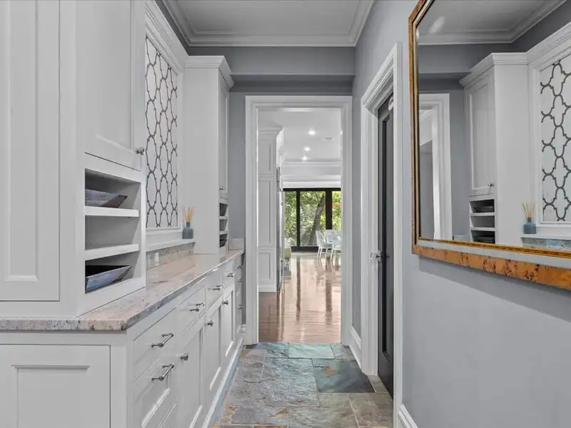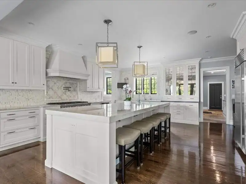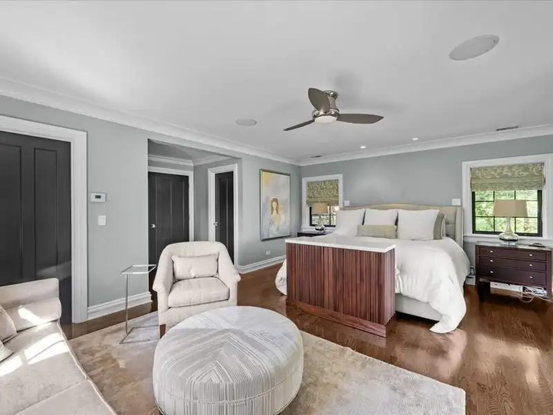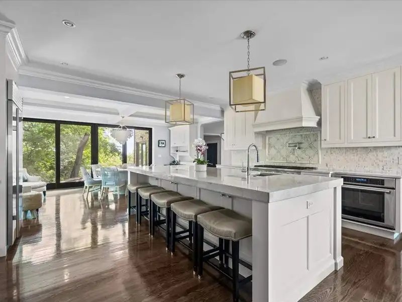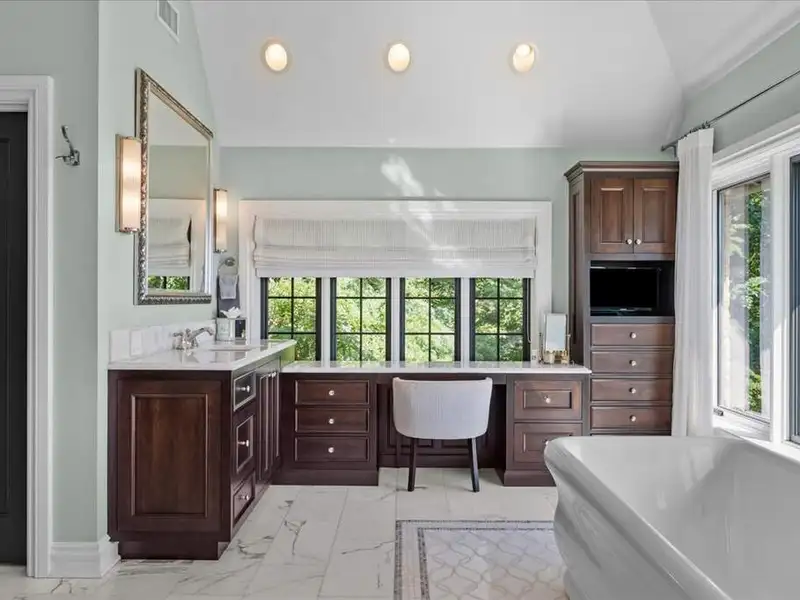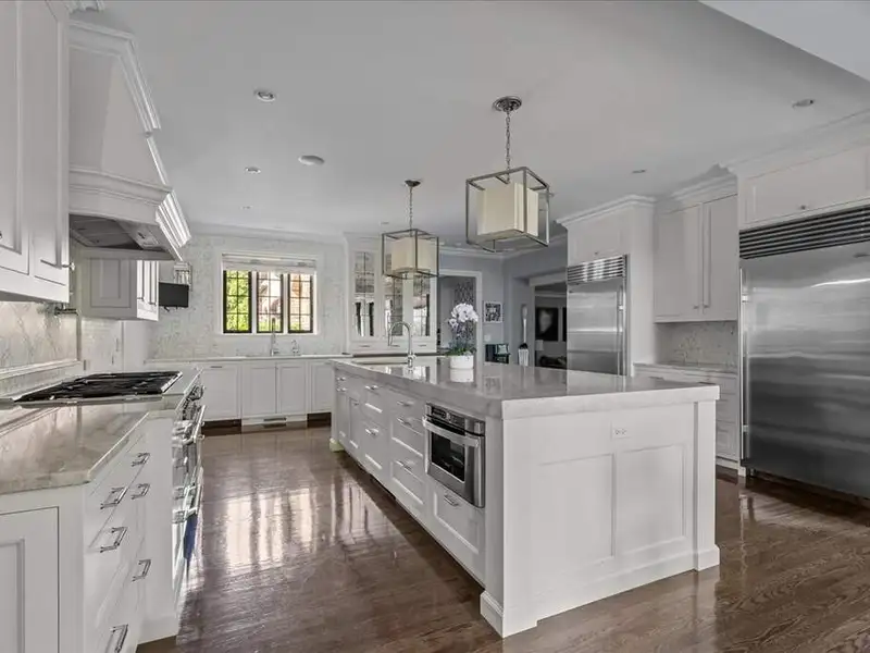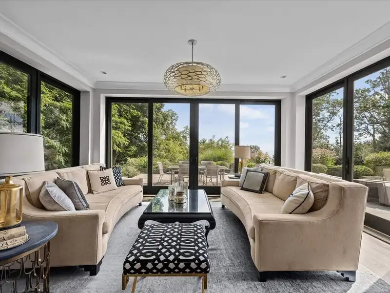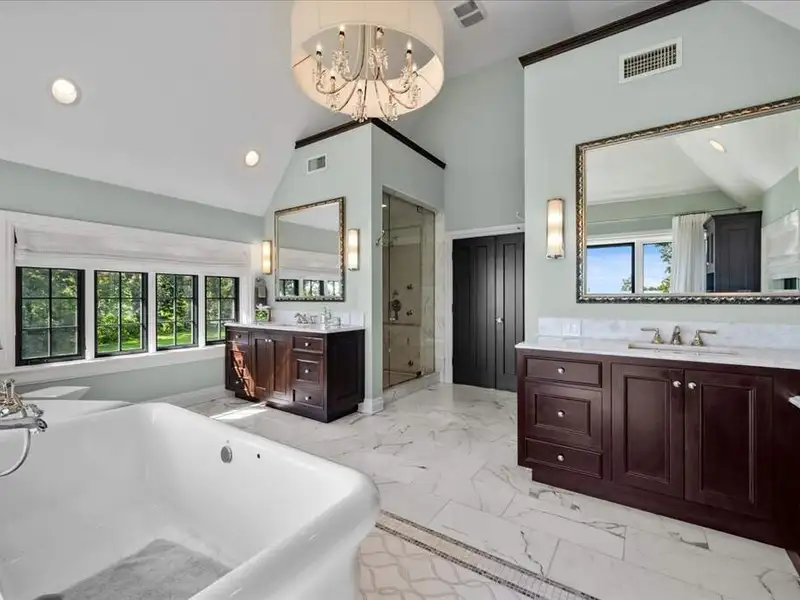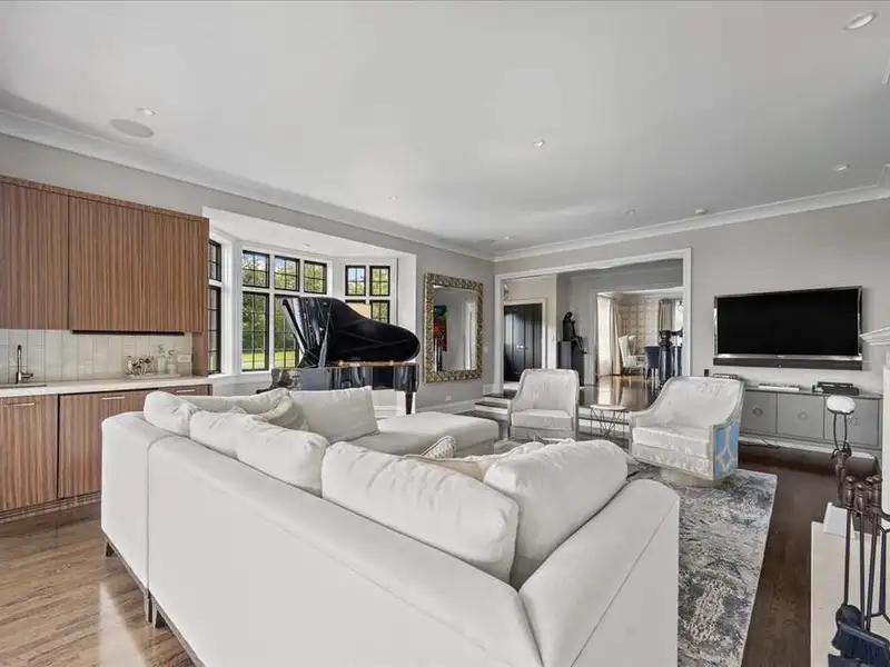 Located in the coveted Belle Avenue Historic District, this extraordinary estate sits on 2.3 acres of manicured grounds with sweeping lake views. Fully renovated and expanded, the residence blends timeless elegance with modern luxury for a truly one-of-a-kind offering. This five-bedroom, eight full and one half bath home showcases craftsmanship of the highest caliber, including a brick exterior, slate tile roof, extensive millwork, crown moldings, built-ins, hardwood floors, expansive windows, soaring ceilings and graciously scaled rooms. No detail was spared in the complete gut renovation and thoughtful addition that restored and elevated this classic beauty. A welcoming foyer leads to a grand living room, perfect for entertaining, with a limestone fireplace, custom built-ins and a wet bar. The living room opens to a light-filled sunroom with three sets of floor-to-ceiling sliders, seamlessly connecting to multiple outdoor entertaining spaces with endless lake views. A formal dining room with herringbone wood floors, custom wallpaper and a crystal chandelier adjoins to a butler's pantry featuring two wine fridges, custom cabinetry and marble counters. The chef's kitchen is a showstopper, with bespoke inset white wood cabinetry, Quartzite counters, decorative marble backsplash, oversized island with prep sink and seating, professional-grade appliances and a walk-in pantry. A spacious eat-in area has 2 sets of sliders that lead to the bluestone patios. The kitchen opens to a large sunken family room that is a perfect gathering spot for family and friends. Additional highlights of the main level include a sophisticated powder room, mudroom with slate flooring and built-ins, full bath, package receiving room and heated three-car garage. Upstairs, the primary suite is a private sanctuary with a cozy sitting area, custom built-ins, dual walk-in closets and a spa-like marble bath featuring vaulted ceilings, a soaking tub, expansive shower, and breathtaking lake views. Four additional bedrooms each include luxury en-suite baths and walk-in closets with custom built-ins. A second-floor laundry with two washer/dryer sets plus a coffee/bar station on the landing outside the family bedrooms add delightful convenience. The third floor, with its vaulted ceiling and abundant natural light, offers a large bonus room with wet bar, office space, home gym/Pilates studio and full bath. The lower level provides flexible living space with a recreation room, game room, sitting area, guest bath and extensive storage. The outdoor spaces are equally impressive, with bluestone patios, a stone fire pit, built-in bar with seating and pristine landscaping overlooking the ravine and lake. This property combines unmatched craftsmanship, spectacular grounds and iconic lakefront vistas-all within close proximity to the lakefront, schools and town. This is a rare opportunity to own a one-of-a-kind stately residence on a stunning property. Above Grade Total Sq Ft: 8,186, Below Grade Total Sq Ft: 2,606, Approx. Total Finished Sq Ft: 10,792 Sq Ft plus 824 Sq Ft 3-car garage. 2024 taxes: $64,502 with Homeowner Exemption.