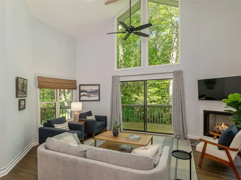 End-of-season price improvement! Tucked into a lush setting between Highlands and Cashiers, this refined duplex offers a rare blend of privacy, comfort, and access to one of the Plateau's most exclusive lifestyle communities. Membership at Wildcat Cliffs Country Club is reserved with ownership-a significant advantage, as there is currently a waiting list for non-residents. This is a turnkey opportunity for elevated mountain living, complete with your choice of social or full golf privileges. Both light-filled units feature soaring ceilings, expansive windows, and open-concept layouts designed for effortless living. In Unit B, a dramatic stone gas fireplace anchors the main living area; Unit A offers a sleek gas fireplace with a more modern profile. Spiral staircases in each unit lead to versatile loft spaces ideal for a home office, studio, or private retreat. Primary suites include spacious ensuite baths, and secondary bedrooms with full guest baths offer comfort and flexibility. Unit B also includes a sunroom and a partially covered deck at the rear, while Unit A features its own open deck. These outdoor areas overlook a backyard wrapped in greenery-providing both separation and subtle connection between the units. Each also includes a classic front porch, an individual one-car garage with space for a golf cart, and additional parking pads, with a shared driveway serving both. The property is offered as a full duplex or as individual residences, with preferred pricing available for buyers acquiring both. Just minutes from the Whiteside Mountain trailhead and the fine dining and boutique shopping of Highlands and Cashiers, the home offers easy access to everything that defines life on the Plateau. Membership at Wildcat Cliffs Country Club includes a championship golf course, multiple dining venues, a recreation and fitness center with state-of-the-art equipment, tennis and pickleball courts, croquet lawns, stocked fishing ponds, and a year-round calendar of curated social events. Whether for weekends or full-time living, this home is a sophisticated gateway to one of the Plateau's most celebrated communities.
