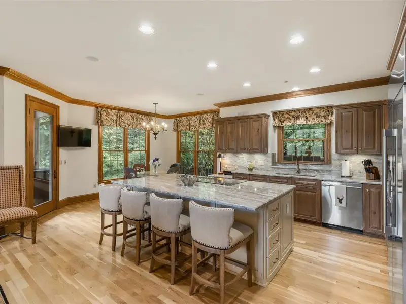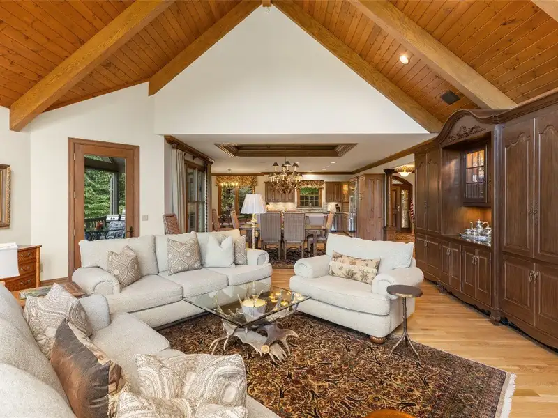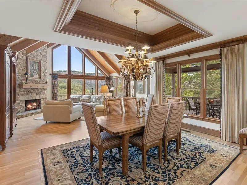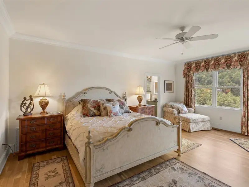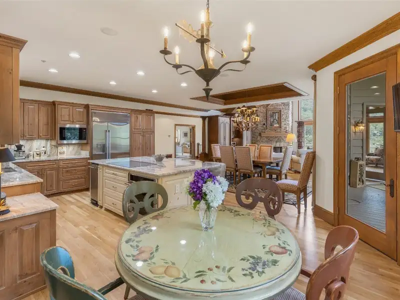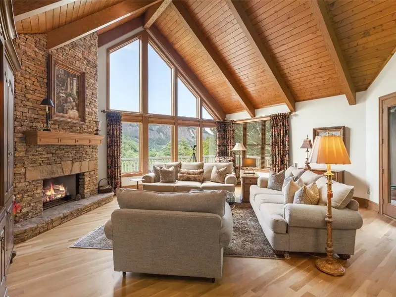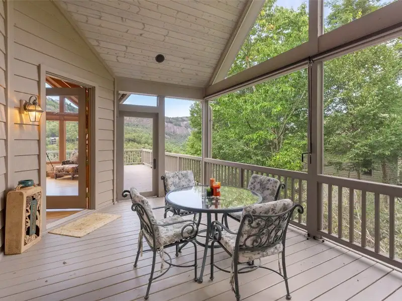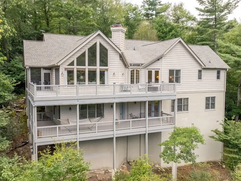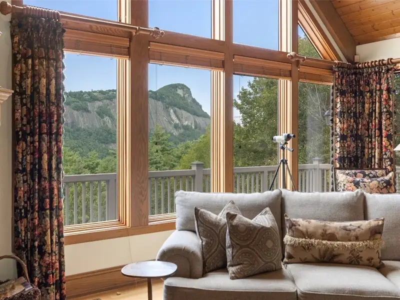 This is the Panoramic BIG VIEW! Prepare to be captivated by sweeping, unobstructed views of iconic Whiteside Mountain from this stunning Highlands Falls Falcon Ridge residence, a home so remarkable it has been featured twice in Architectural Digest. Designed with generous proportions and effortless flow, the home offers main-level living with the primary suite conveniently located on the entry level. Architectural details abound, highlighted by custom wormy chestnut and oak features throughout, including an impressive 3" solid wormy chestnut entry door. The primary suite commands breathtaking mountain views and sunrises and boasts a lavish Italian marble bath with soaking tub, oversized shower, dual lighted mirrors, hidden lighted vanity, Kohler fixtures, custom walk-in closets, and a private wet bar with sink and mini-fridge. The open-concept living, dining, and kitchen spaces flow seamlessly onto a screened porch with a fully outfitted grilling station featuring a Blaze grill-an entertainer's dream with Whiteside Mountain as the backdrop. The main level also conveniently includes a guest bedroom, full bath, office/den with custom glass paned wormy chestnut and oak door, and a full laundry room with sink. The lower level provides for guest privacy with a second living area with fireplace, private deck, two spacious en-suite bedrooms, powder room, bonus/flex room with gym/playroom potential, and a secondary laundry area. Recent upgrades are extensive, including a remodeled kitchen, refinished hardwood floors, 27 new windows, new roof, gutters with guards, encapsulated crawlspace, repaved driveway with focal pavers, updated HVAC systems, new water heaters with recirculation pump, blown-in attic insulation, new gas logs in main level fireplace, and view clearing to fully showcase dramatic views of Whiteside Mountain, Wildcat Ridge, and Cullasaja Club beyond. A drainage system beneath the upper deck ensures protection for the lower-level outdoor living area. Peace of mind comes with a 500-gallon fresh water reserve tank and a whole-house generator. A two-car garage with workshop, along with a welcoming exterior accented by a serene water feature, completes this mountain sanctuary. This Highlands Falls home is more than a residence-it is a retreat of timeless architecture, meticulous updates, and awe-inspiring views. Membership to Highlands Falls CC is not mandatory but the amenities are tremendous and the club is vibrant. See Attached Matterport for tour.
