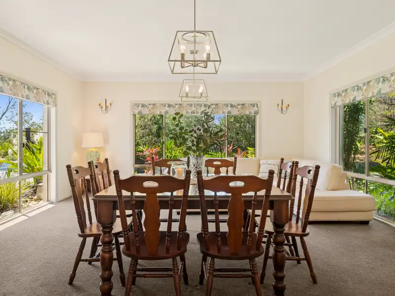 Set amidst beautifully landscaped gardens that include an array of mature fruit and citrus trees, open spaces, well tended lawns and a saltwater pool, the home is cleverly designed for seamless indoor/outdoor entertaining with a selection of living spaces that flow easily to a large, protected barbecue terrace.
