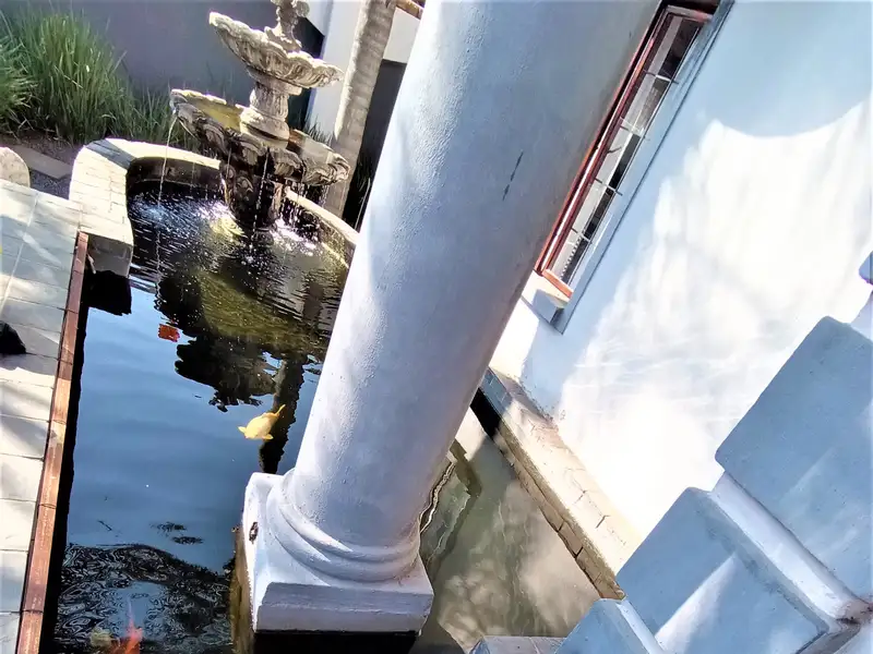 - Koi pond at entrance