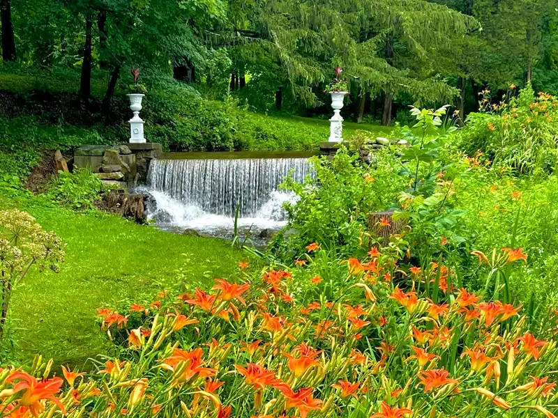 • Large spring-fed pond with waterfall