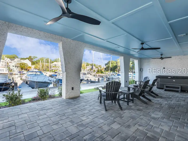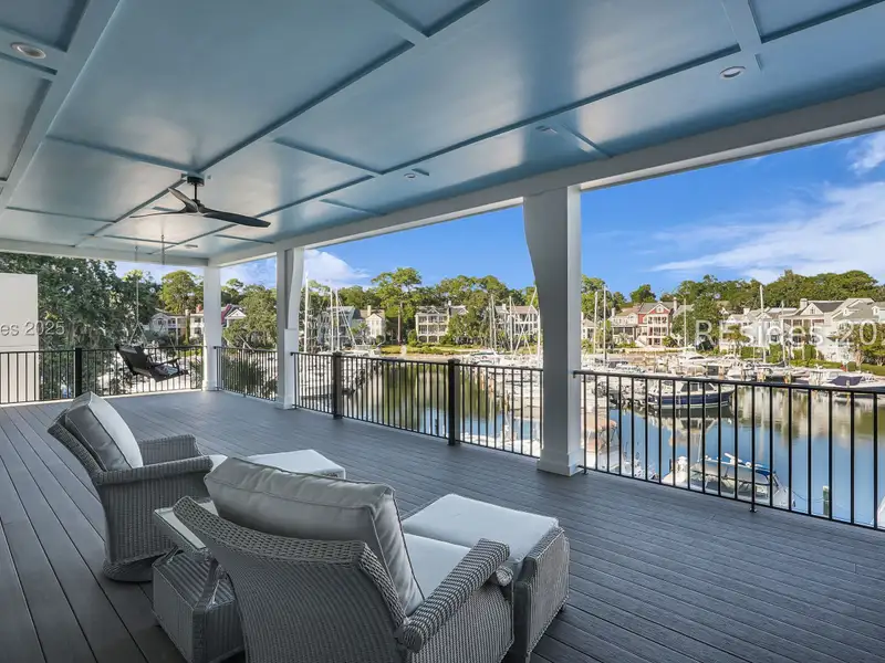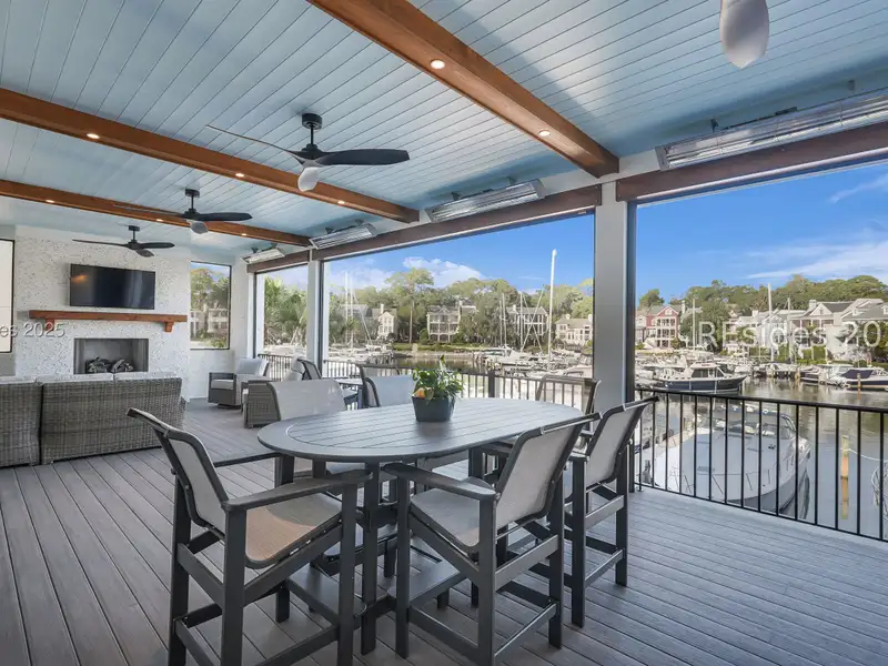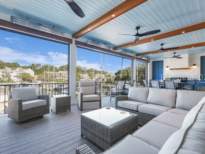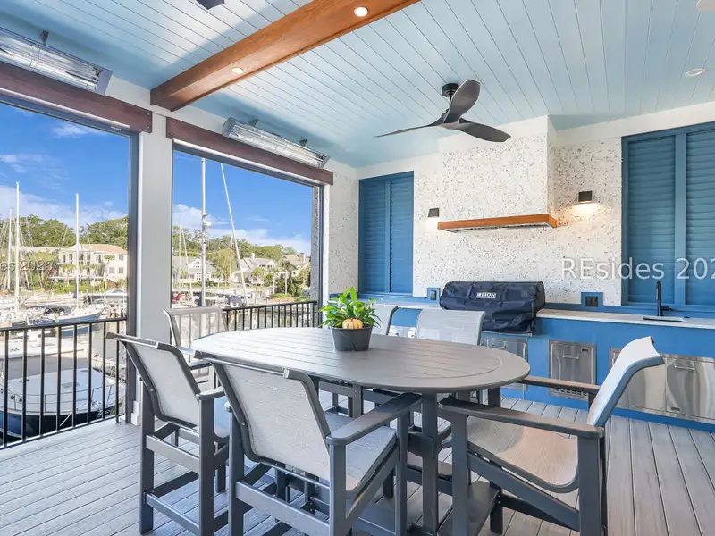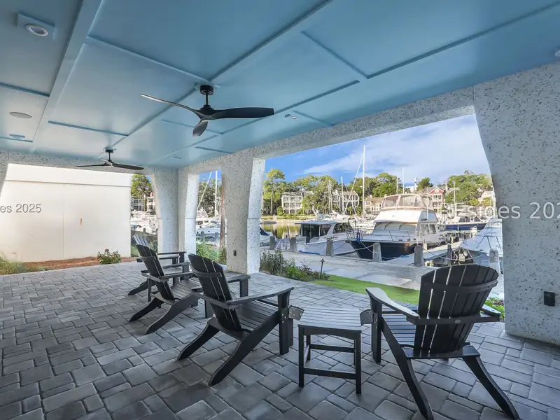 - Three covered patios with marina views