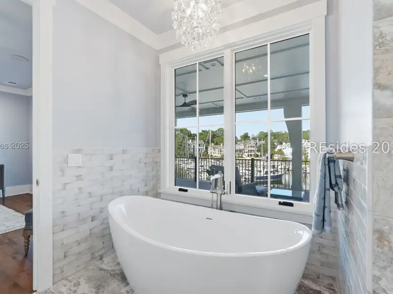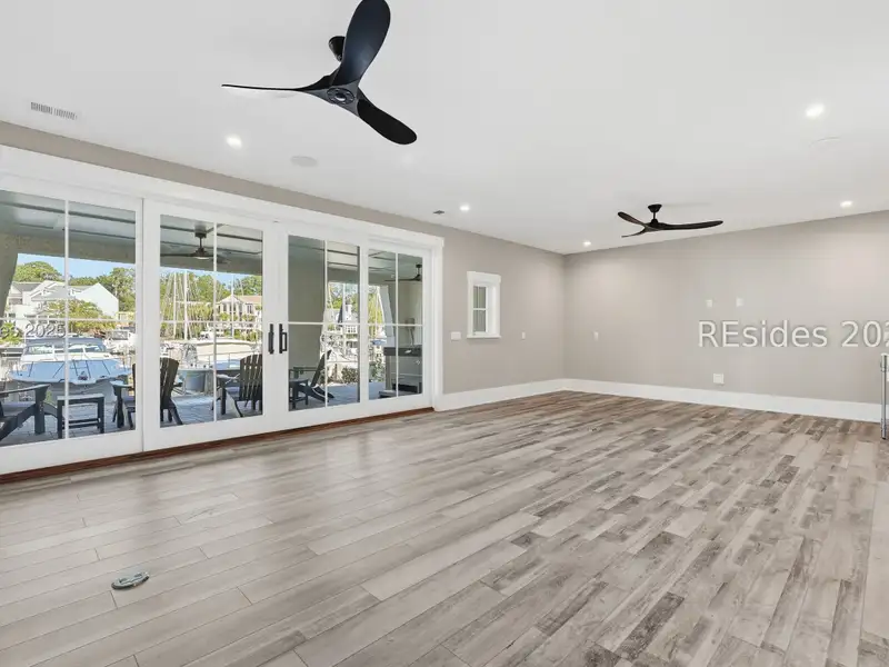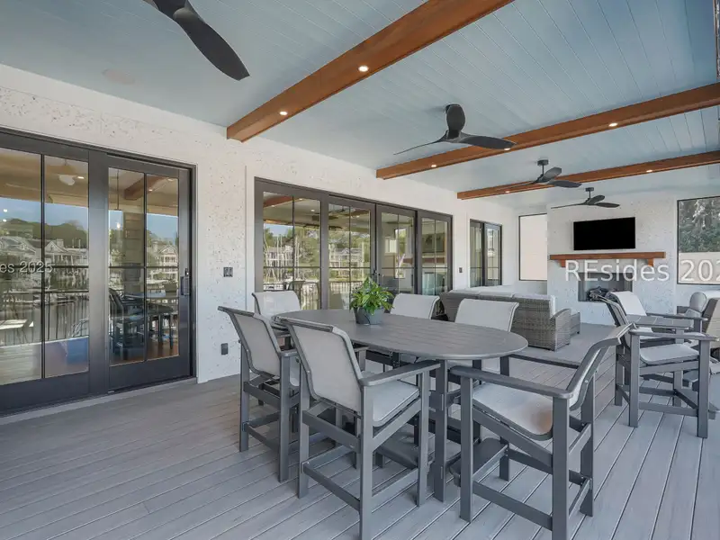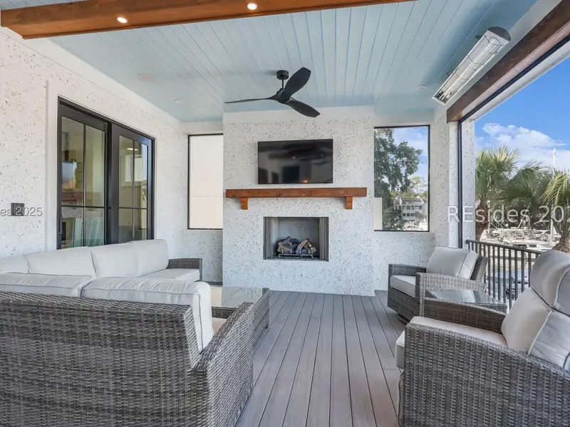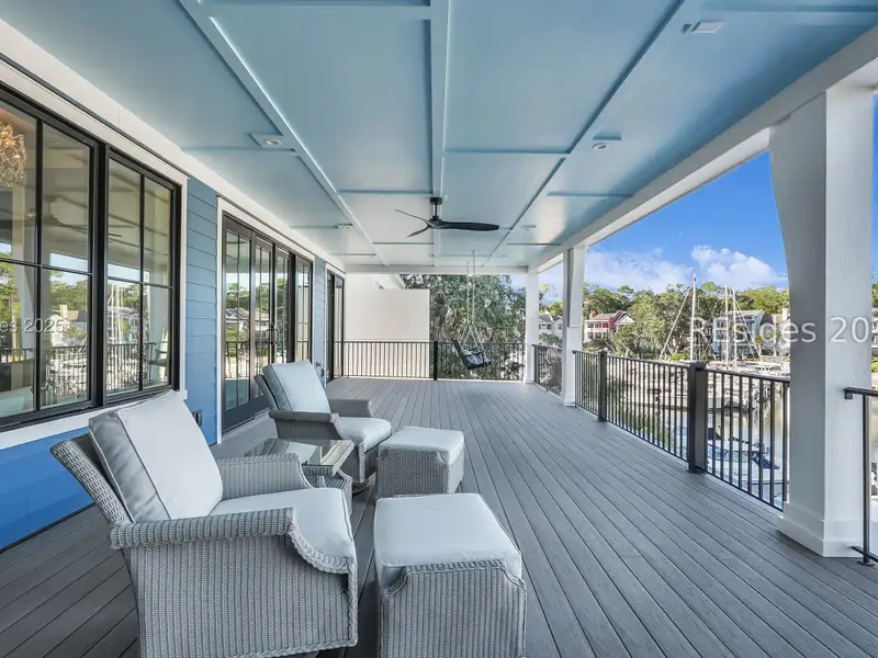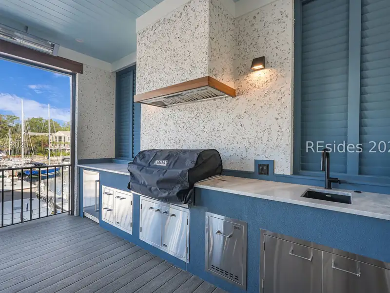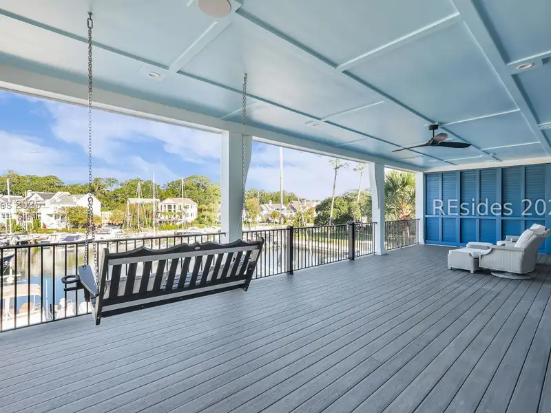 - Three covered patios with marina views