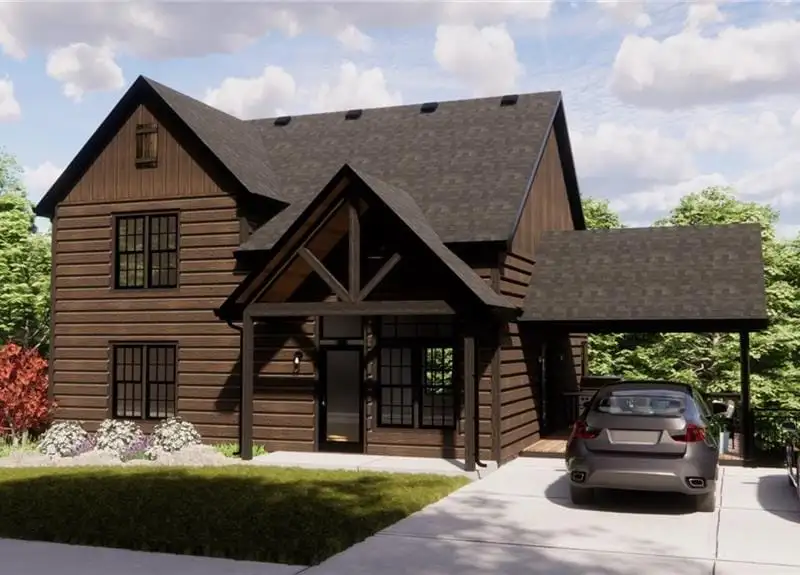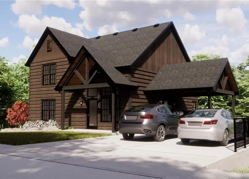 - Exterior log siding with 20-year stain