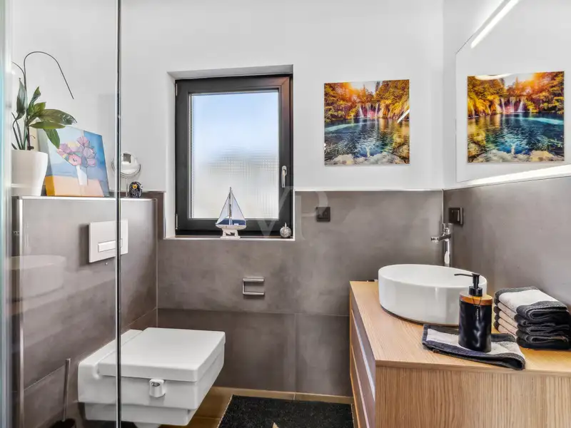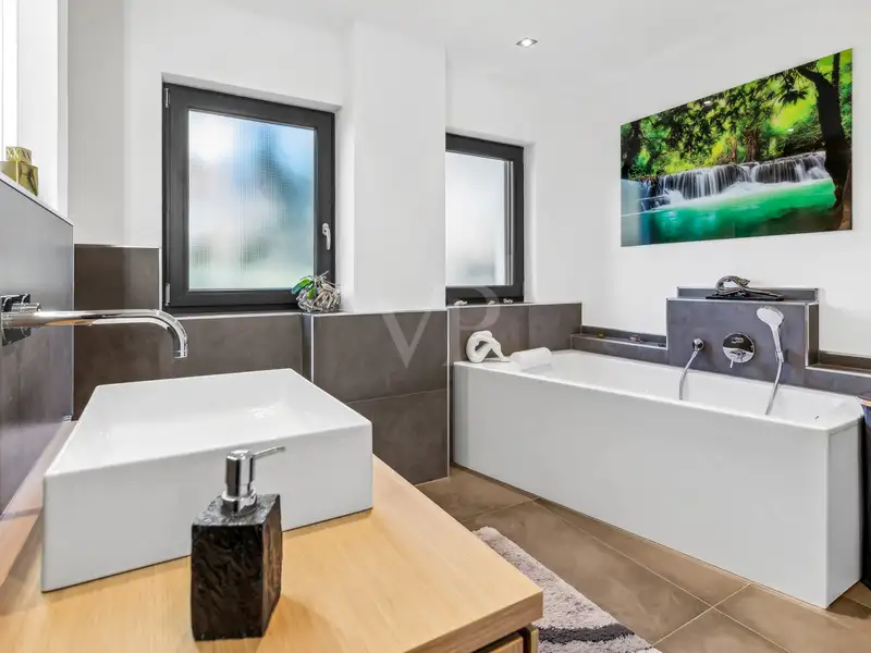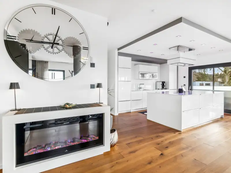 The heart of the property is the light-flooded living/dining area, which impresses with its spaciousness and large windows that provide optimal lighting conditions. The open-plan design creates an airy and harmonious living atmosphere. In addition, this area is particularly impressive thanks to the uniquely fantastic view of the natural surroundings.