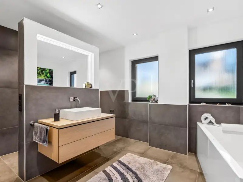 Underfloor heating ensures even heat distribution in all rooms and, in conjunction with the building's high-quality insulation, offers an energy-saving living experience coupled with a pleasant indoor climate.