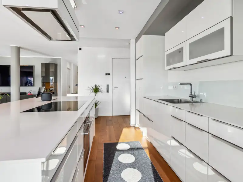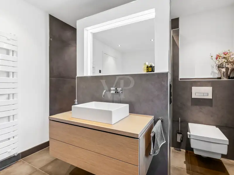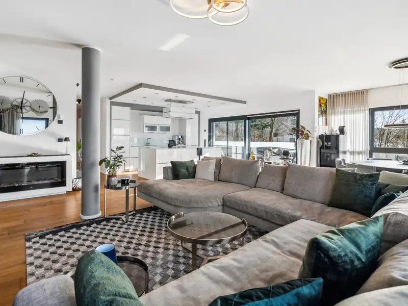 High-quality materials and a sophisticated design characterize the appearance of all rooms. The entire apartment therefore boasts luxurious furnishings that leave nothing to be desired. The upscale building also offers an elevator, a first-class double garage and ample outdoor parking spaces, which further underline the living comfort.