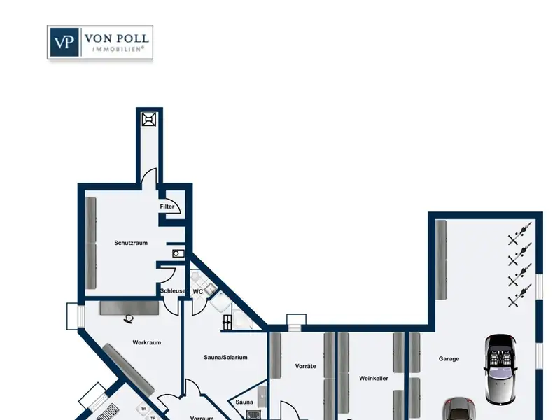 The basement also has its own wine cellar where you can enjoy a glass of your own wine. A sauna and wellness area invites you to relax, while a safe room provides additional security.