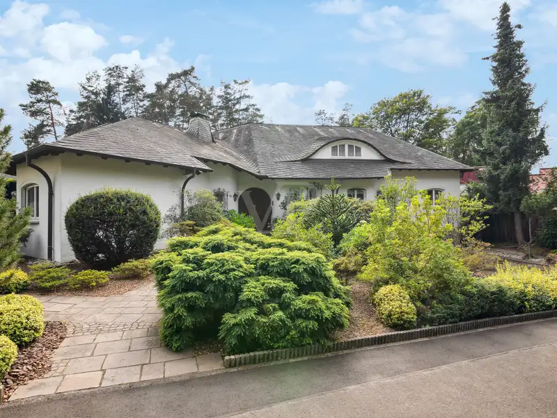 This first-class villa, built in 1986, sits majestically on a generous plot of approx. 1,663 m² and impresses with its unique architecture.