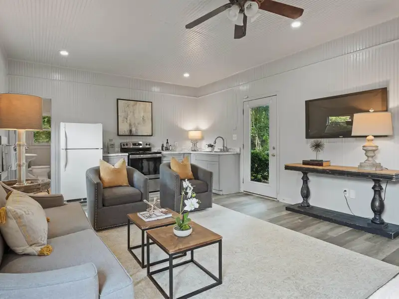 - Detached guest house with bedroom and kitchenette