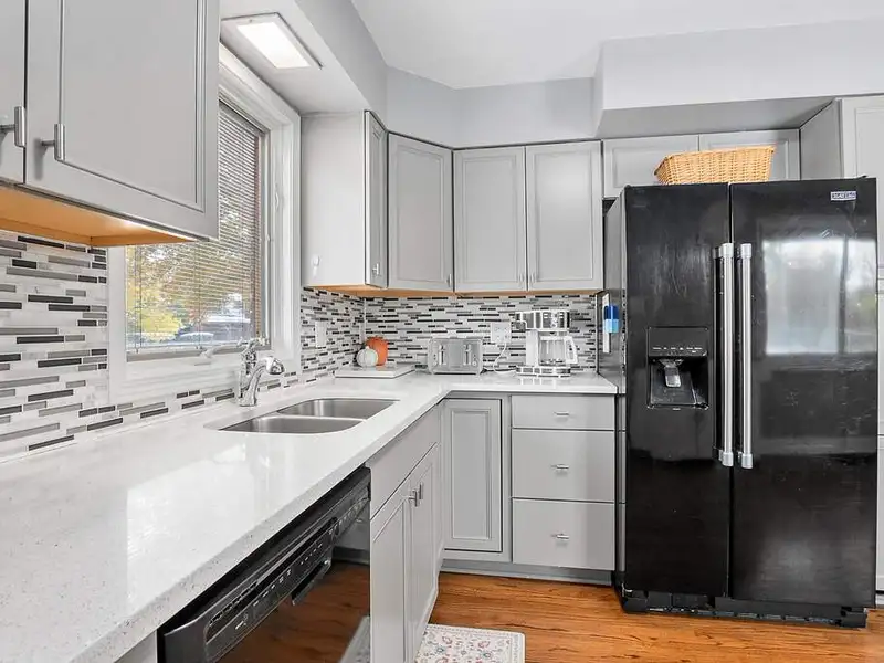 - Eat-in kitchen remodeled with quartz counters