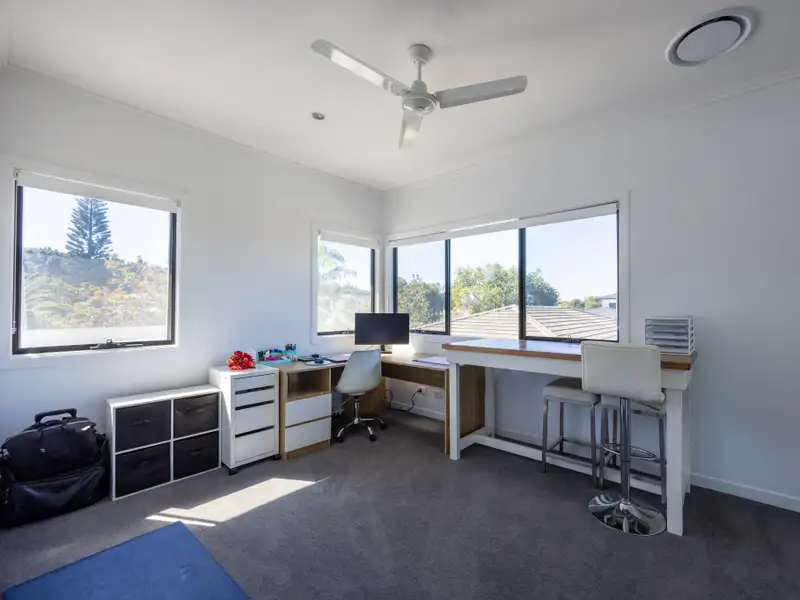 The ground floor master suite has a spacious walk-in wardrobe and lovely ensuite bathroom with his and her basins, shower and bathtub with access to a private outdoor courtyard and park views. Upstairs is a study nook and 3 spacious, stylish family bedrooms sharing a large modern, family bathroom.