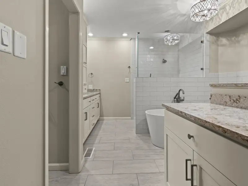 - Updated primary suite with dual walk-in closets