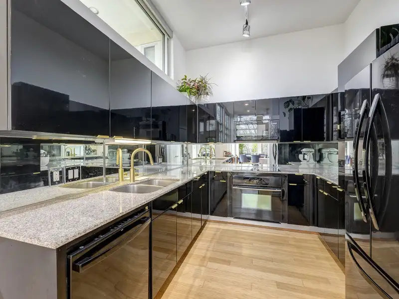 - Sleek kitchen with custom cabinetry