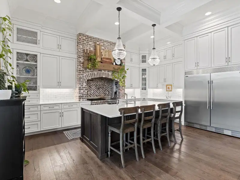 - Chef’s kitchen with quartz island and pantry