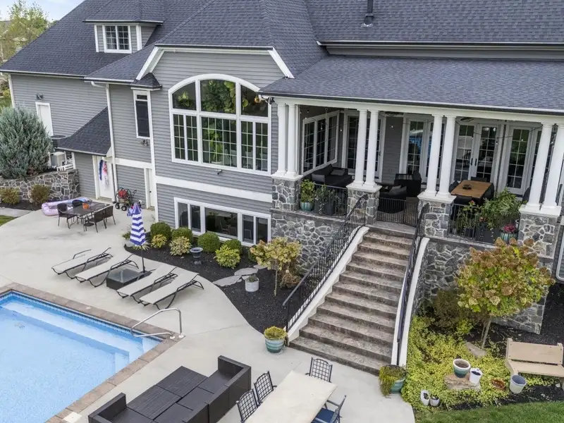 - Resort-style backyard with pool and covered veranda