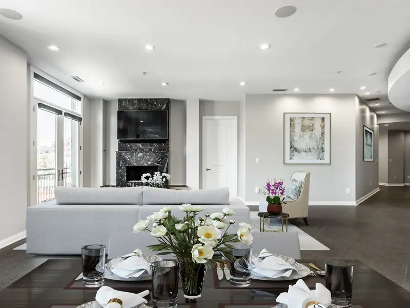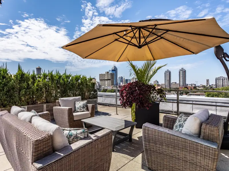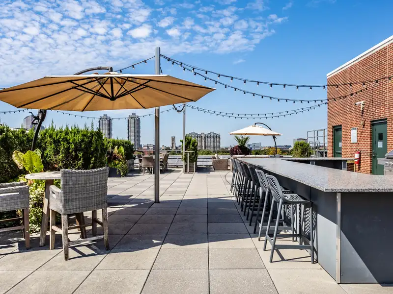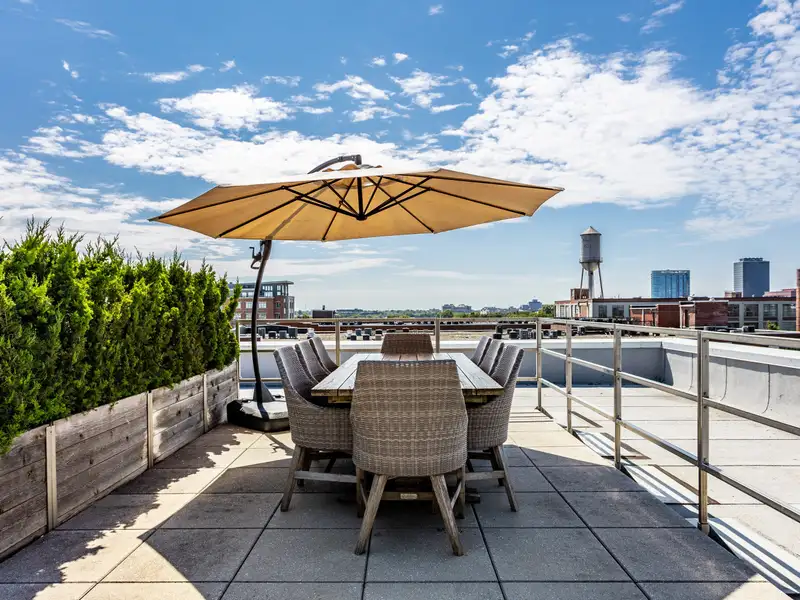 - Rooftop patio with downtown skyline views