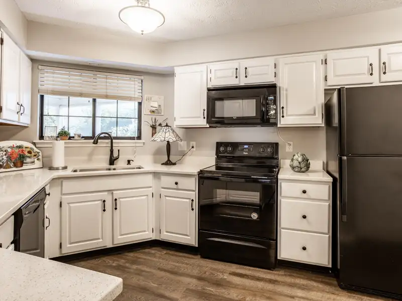 - Kitchen with quartz counters and cabinets