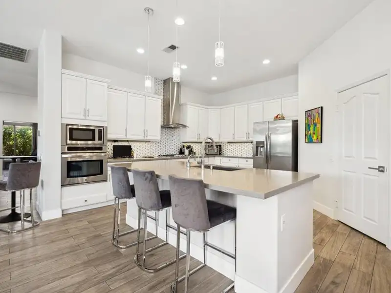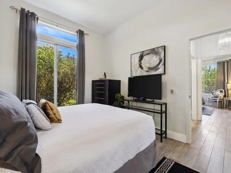 - Private backyard with pool and spa