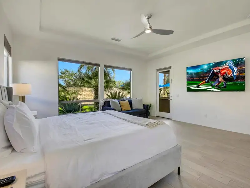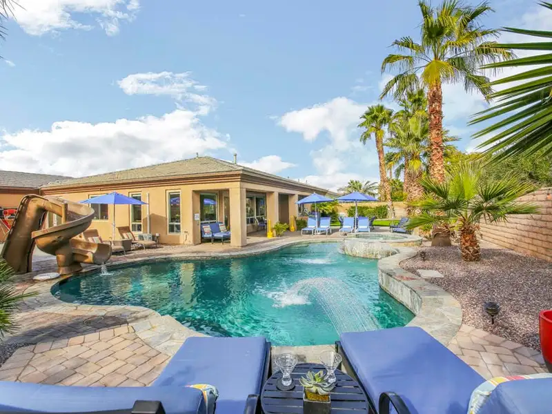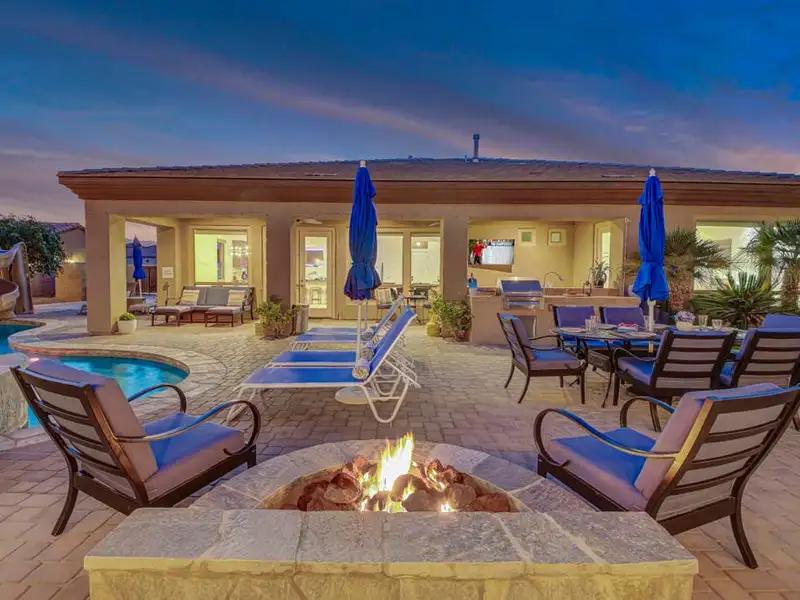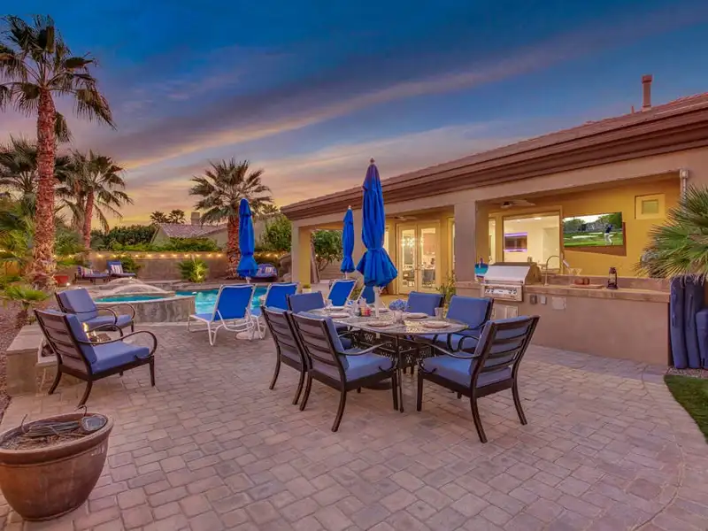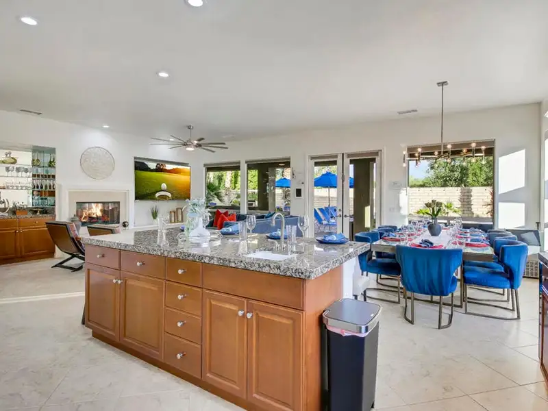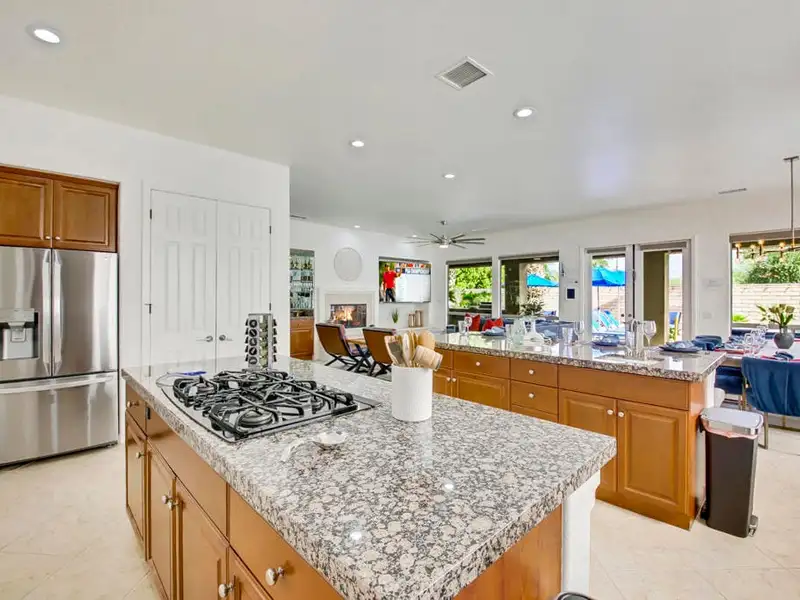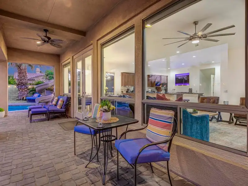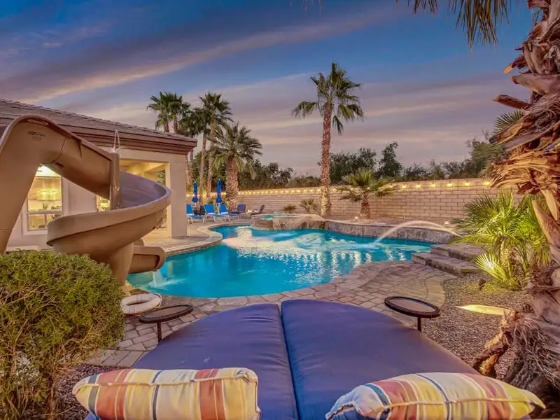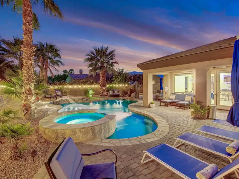 Welcome to Montage at Santa Rosa Coachella Festival Fans Favorite Resort Style place to be! Historical and forward performing luxury short term rental (STR) investment opportunity in this fabulous fully furnished, improved home with ideal location & only 2 neighbors Mountain views and great privacy. Features 5 spacious bedrooms, 3 baths. Multiple indoor & outdoor entertainment w/oversized Pool. Spa w/ waterfall features & monster pool slide, mist system -26' putting green, bocce & basketball game court area, expansive patio deck, BBQ island & cozy firepit. Move the party indoors to the amazing Arcade Game Room w/ Pool Table, Air Hockey full size Arcade games, Golden Tee, Pacman & more! Open concept kitchen w/wet bar, 2 granite islands, dining & living area with Lg screen TV, fireplace & wet bar make indoor guest gatherings a breeze with French doors leading to your private resort, perfect for indoor or outdoor dining with all the luxury amenities to accommodate your entire group of friends & family with ample parking, walking distance to Coachella / Stage Coach, Polo & plenty of Golf, Dining and Shopping! Welcome to your private STR Resort!